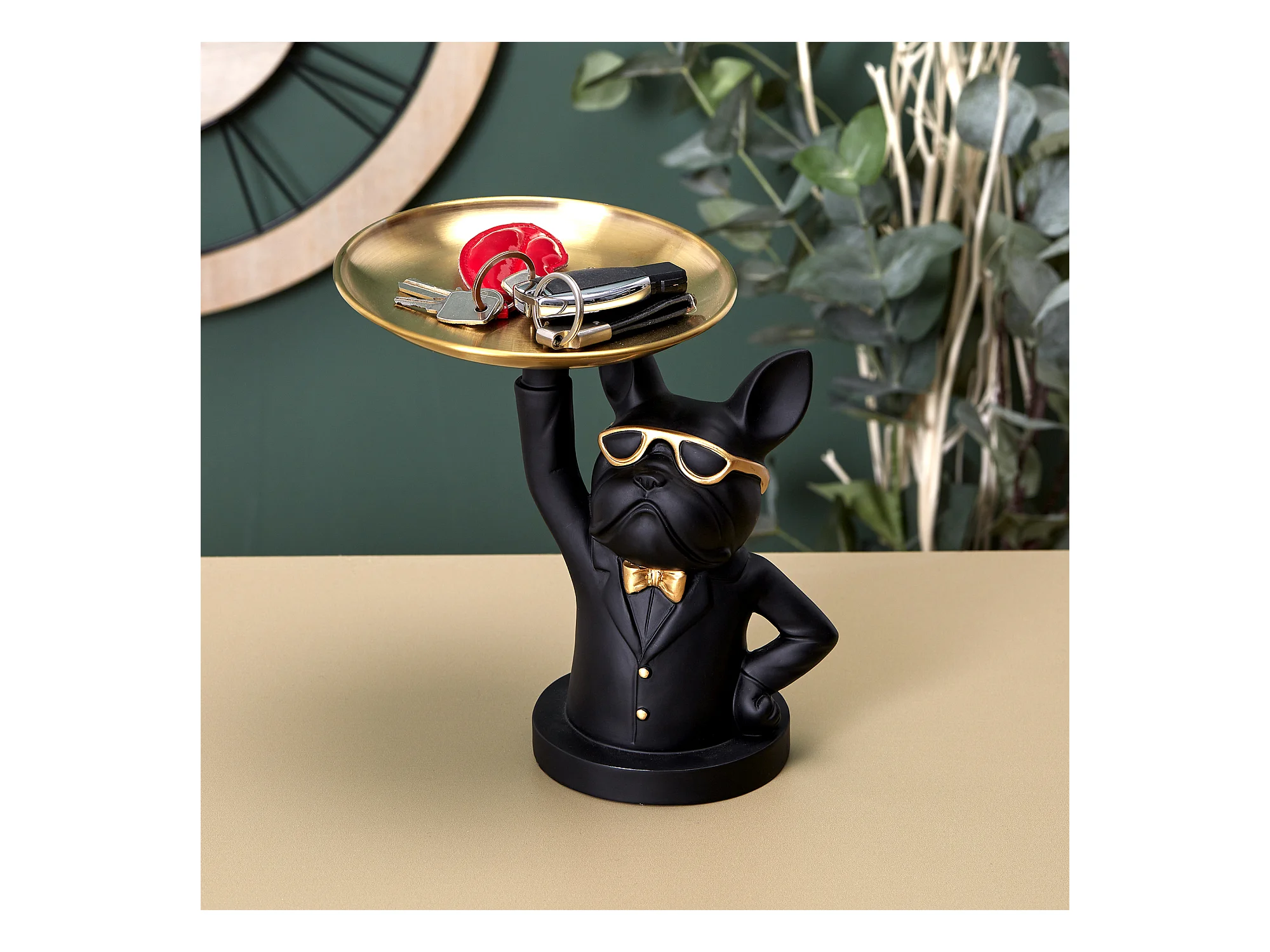 Statue Bulldog Noir Vide Poche Or, Noir
