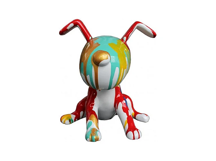 Statue chien assis avec coulures multicolores H25 cm - SNOOP DRIPS