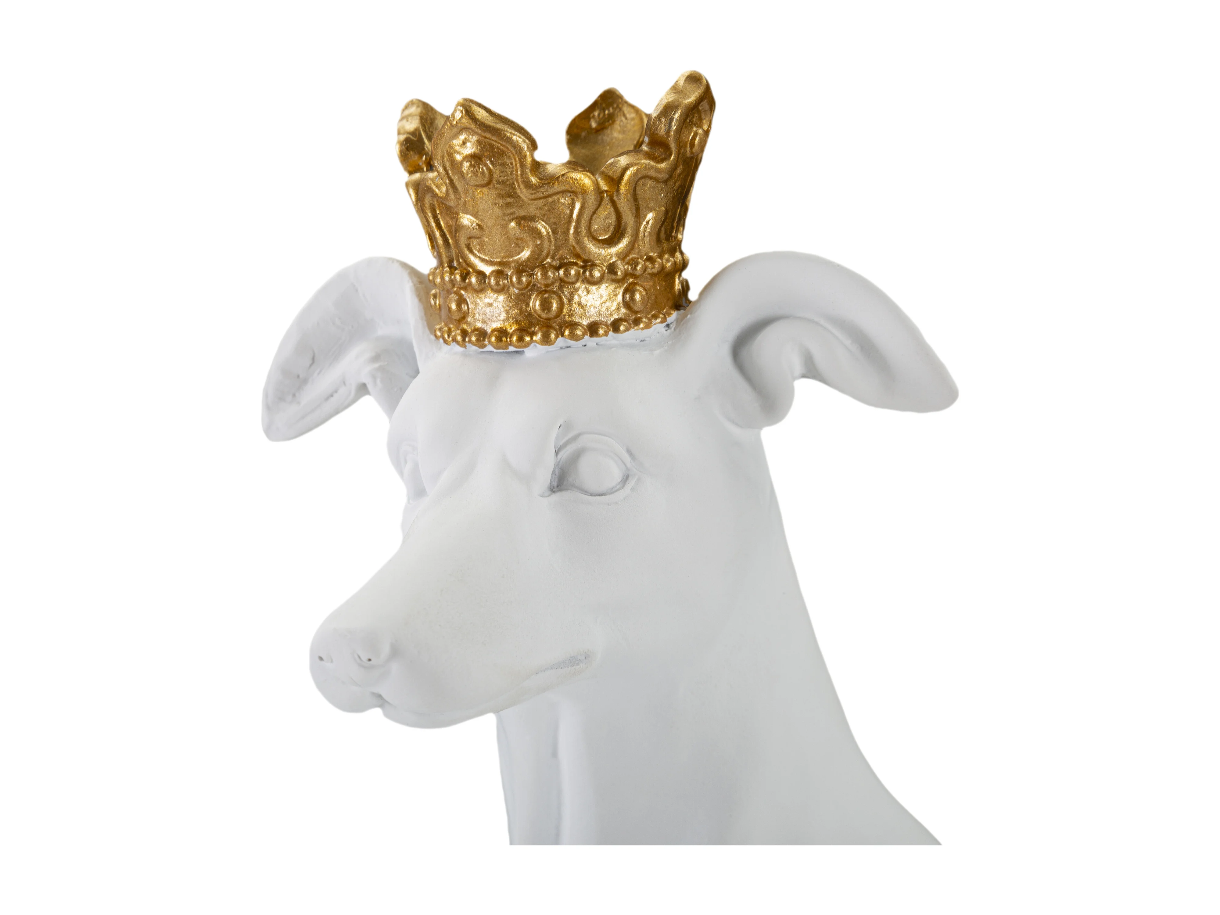 Statuette Déco Chien "Couronne" 33cm Blanc