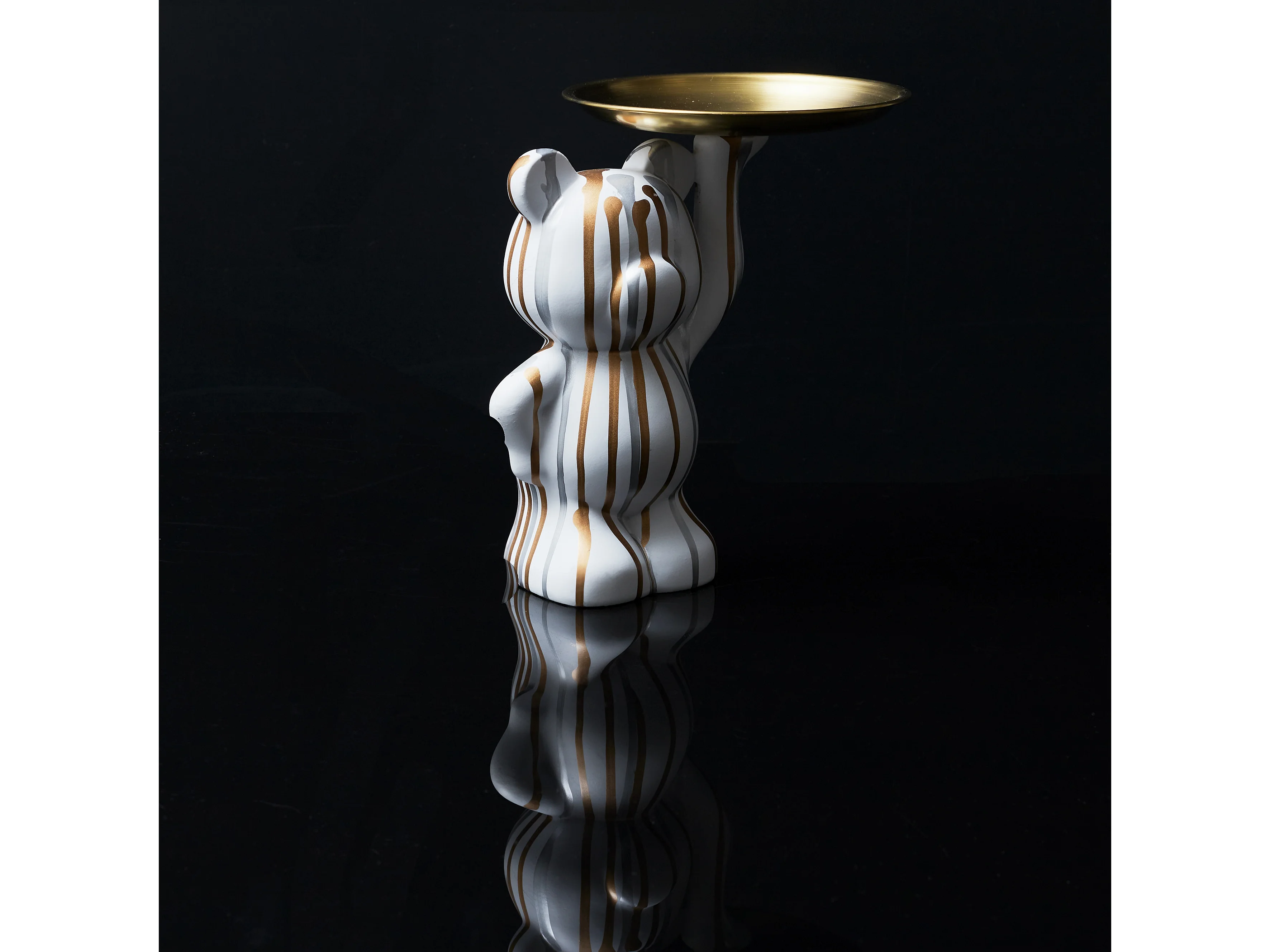 Vide-Poche ours blanc/or/argent plateau en l'air