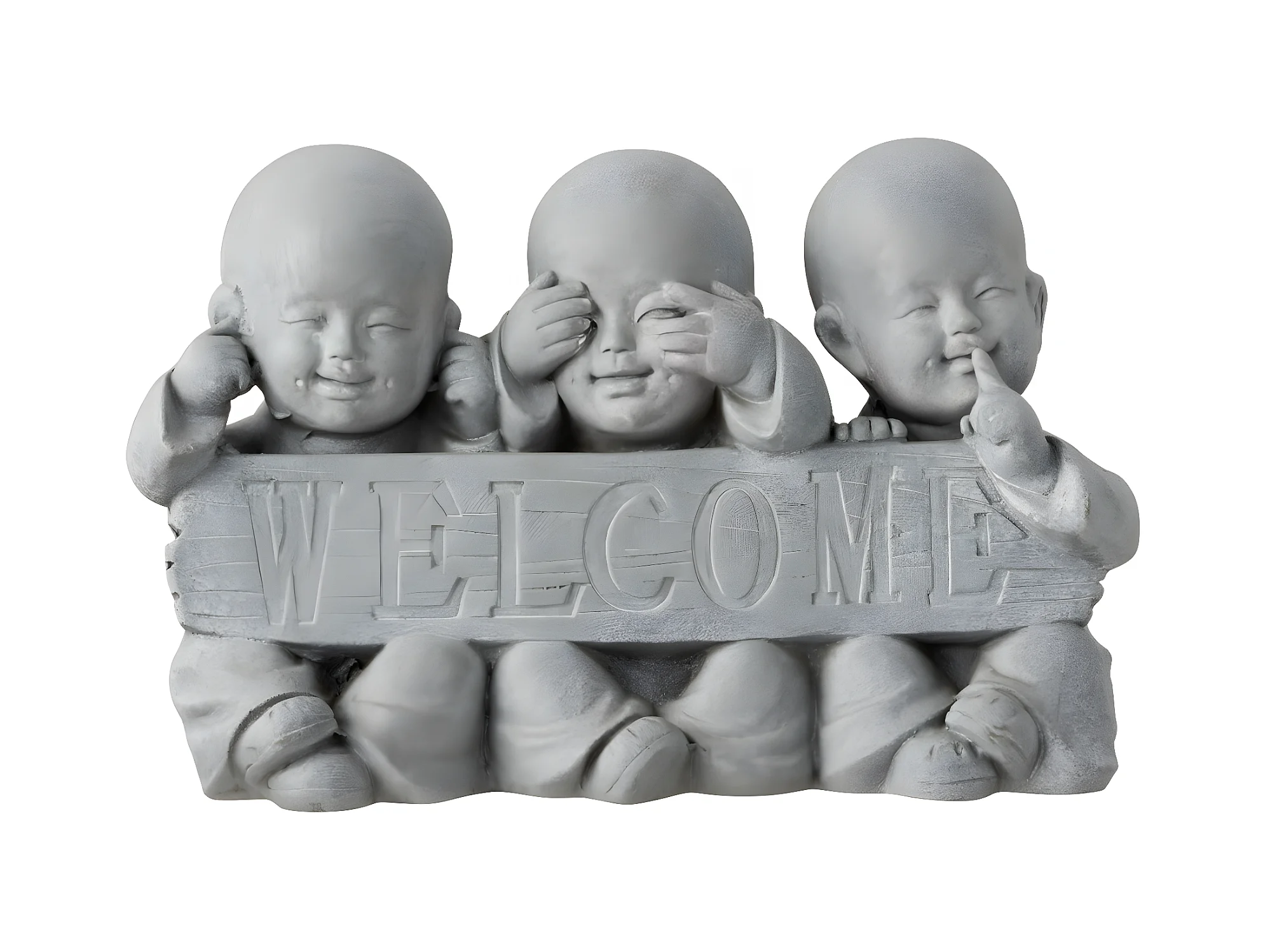 Statue Déco en Résine "Welcome" 42cm Gris