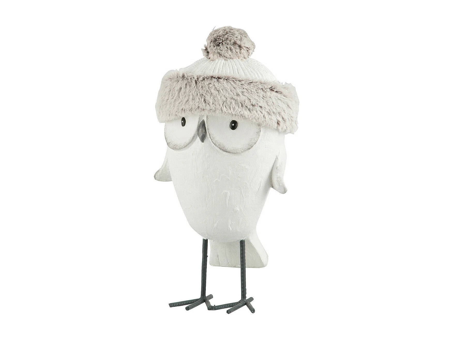 Statue Déco "Hibou avec Bonnet" 40cm Blanc