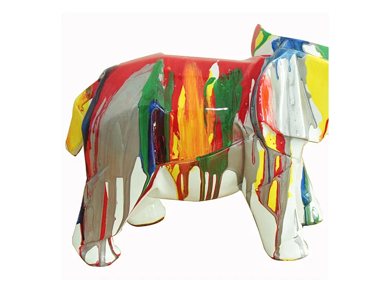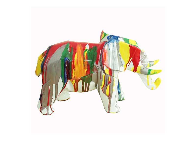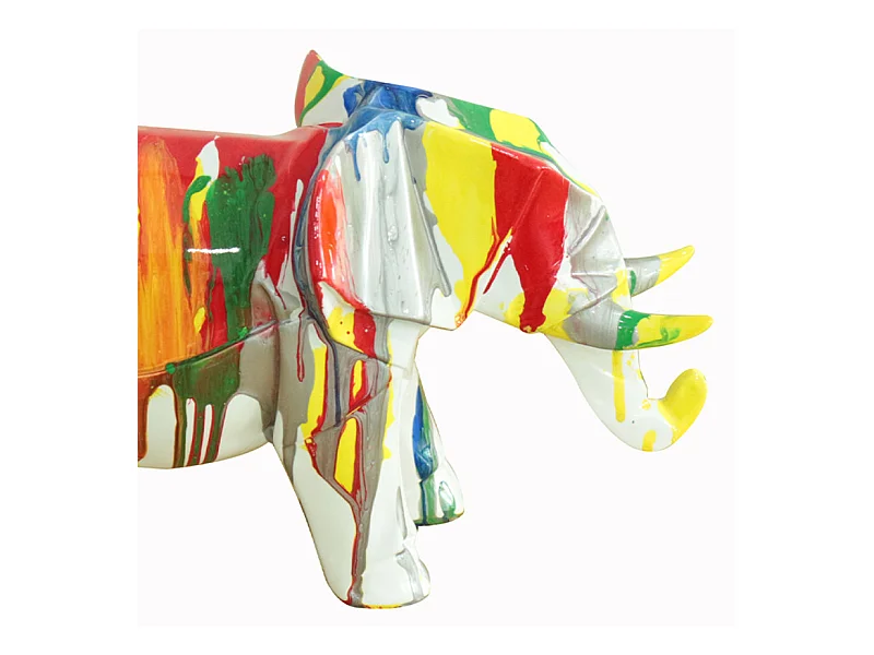 Statue éléphant géométrique coulure argenté multicolore H21 cm - DUMBO