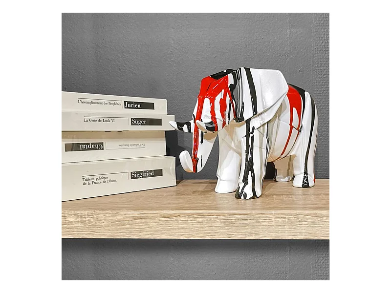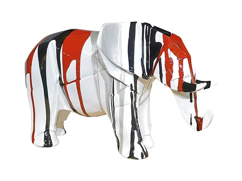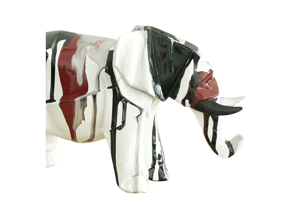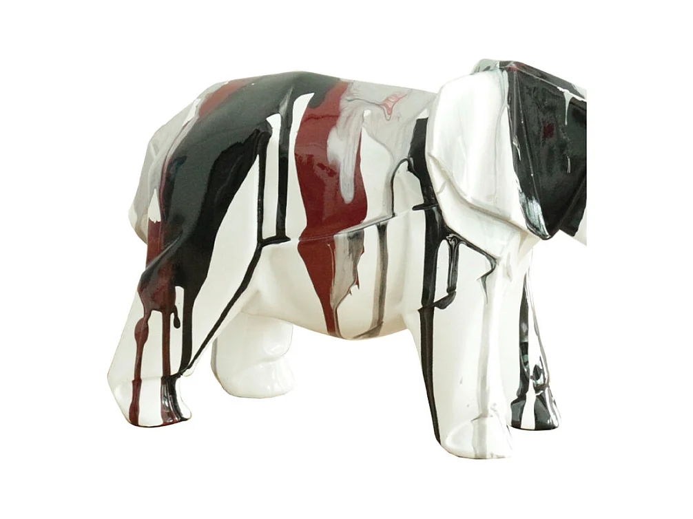 Statue éléphant géométrique coulure noir argenté marron H21 cm - DUMBO
