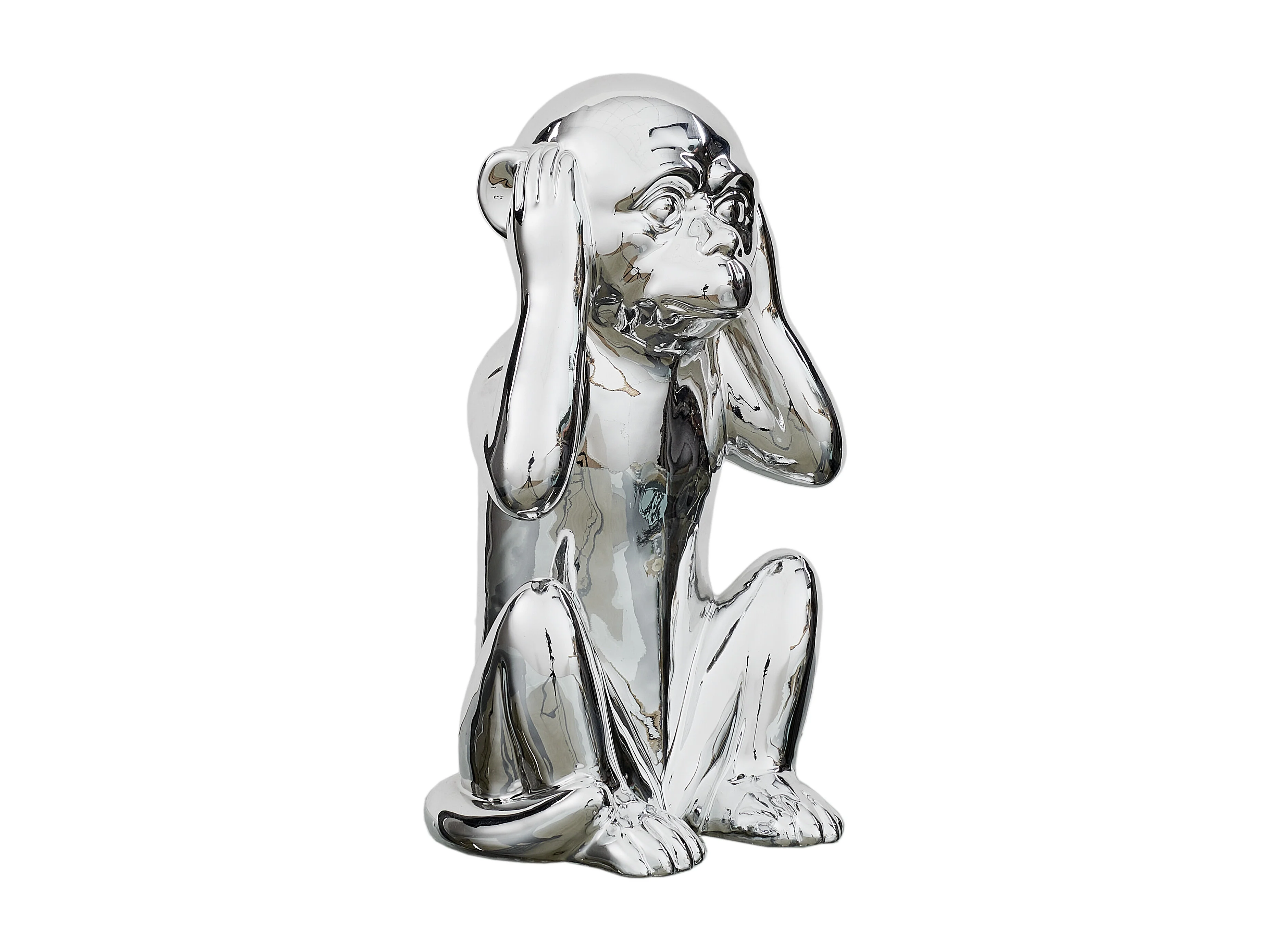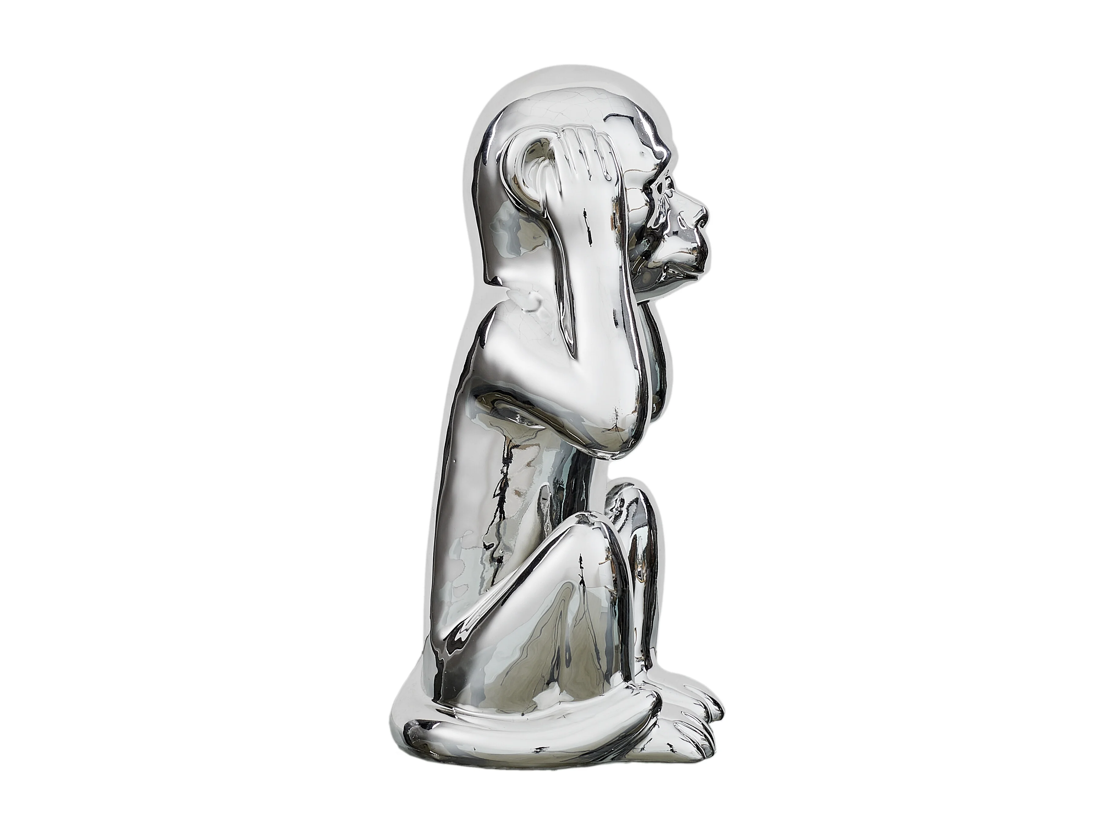 Statue Singe Argente H30cm Argent