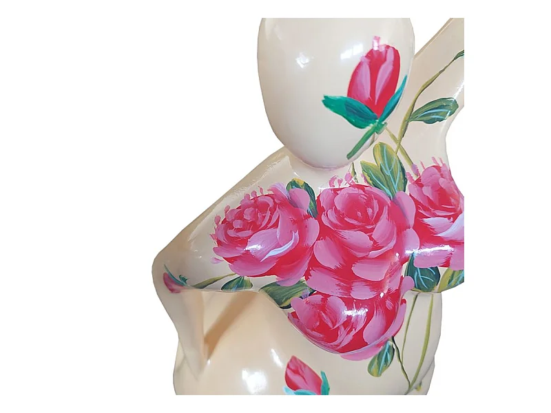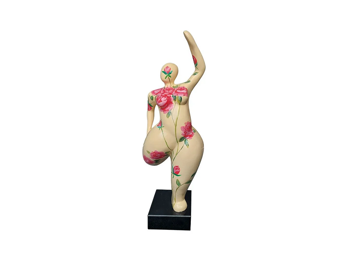 Statue femme jambe pliée beige avec fleurs roses H60 cm - LADY ROSE