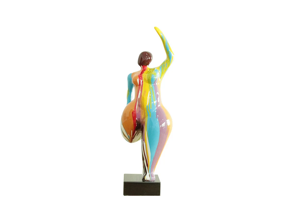 Statue femme jambe pliée coulures multicolores H60 cm - LADY DRIPS 01