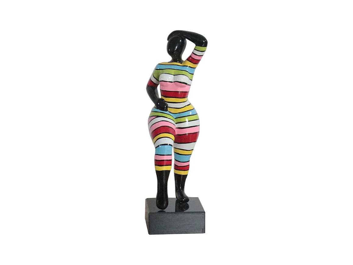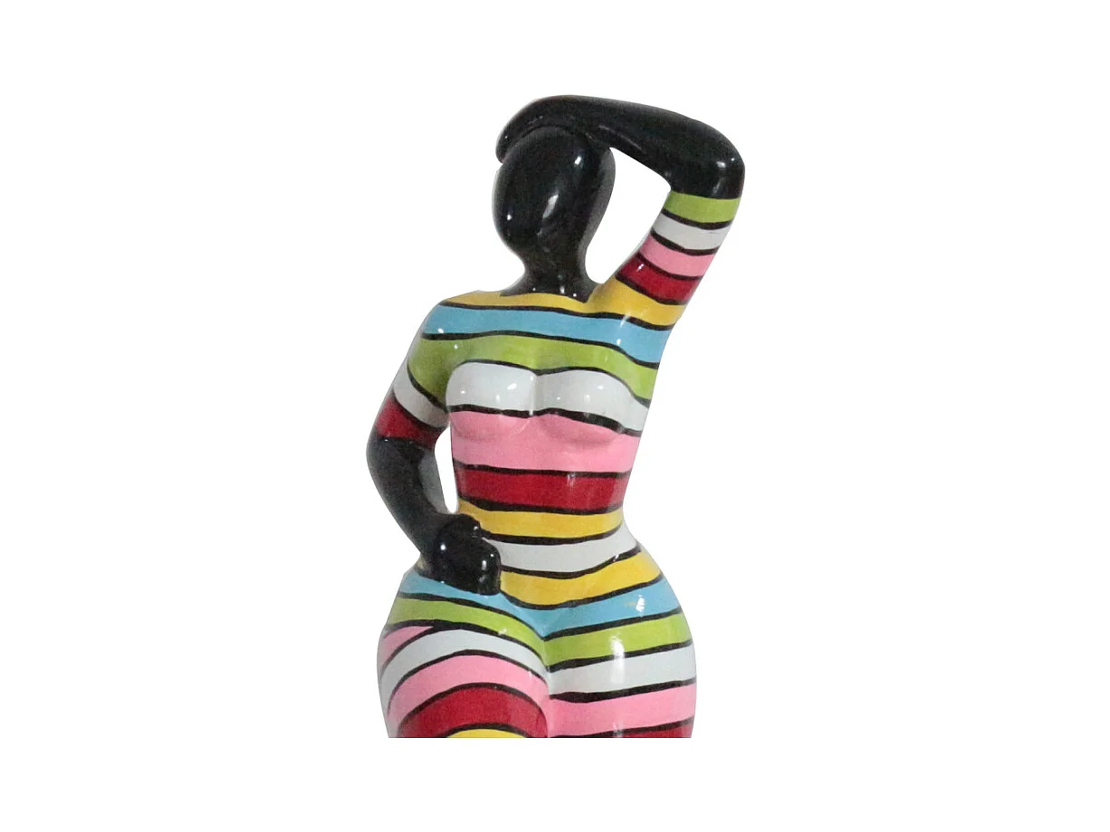 Statue femme pose mannequin rayures multicolores H35 cm - LADY STRIPE