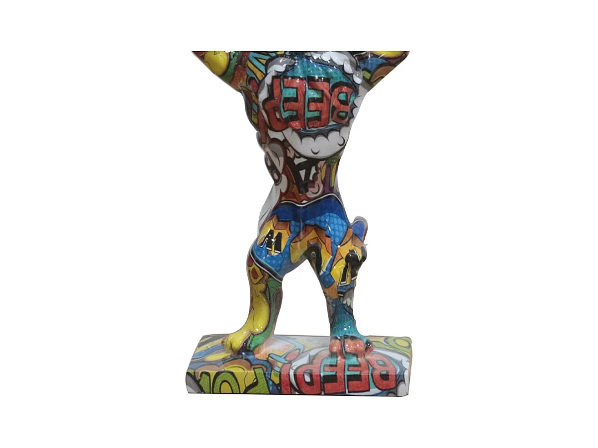 Sculpture chien bulldog blanc peinture multicolore H. 32 cm - MEDOR