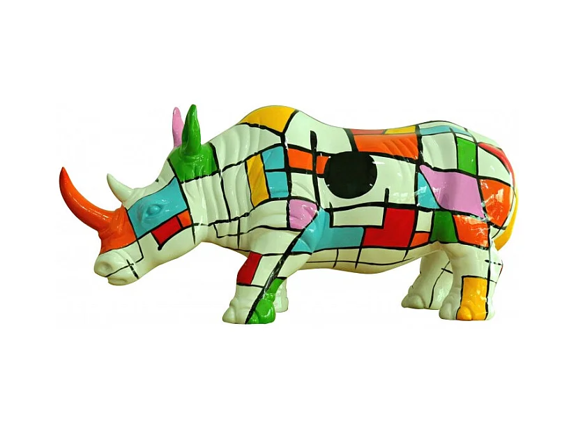 Statue rhinocéros avec carreaux multicolore H24 cm - RHINO SQUARE
