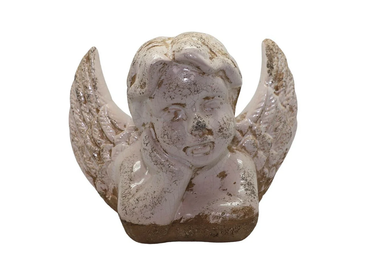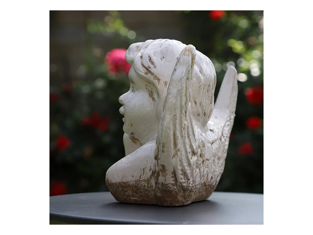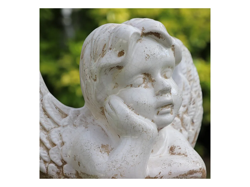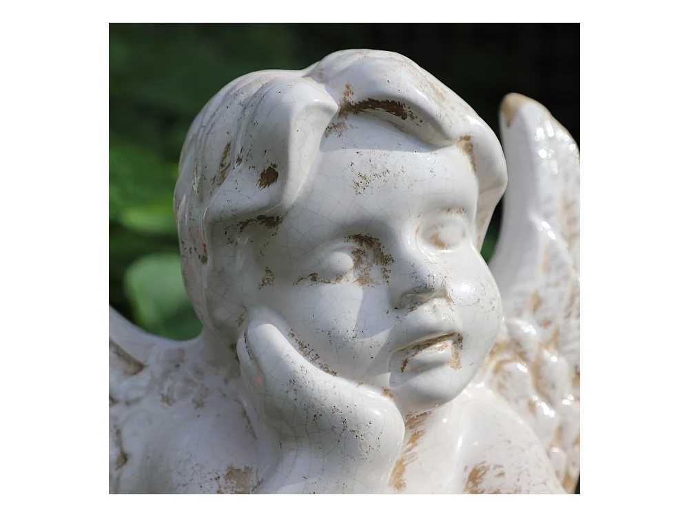 Statue statuette sculpture jardin ange chérubin ciment ivoire 18cm