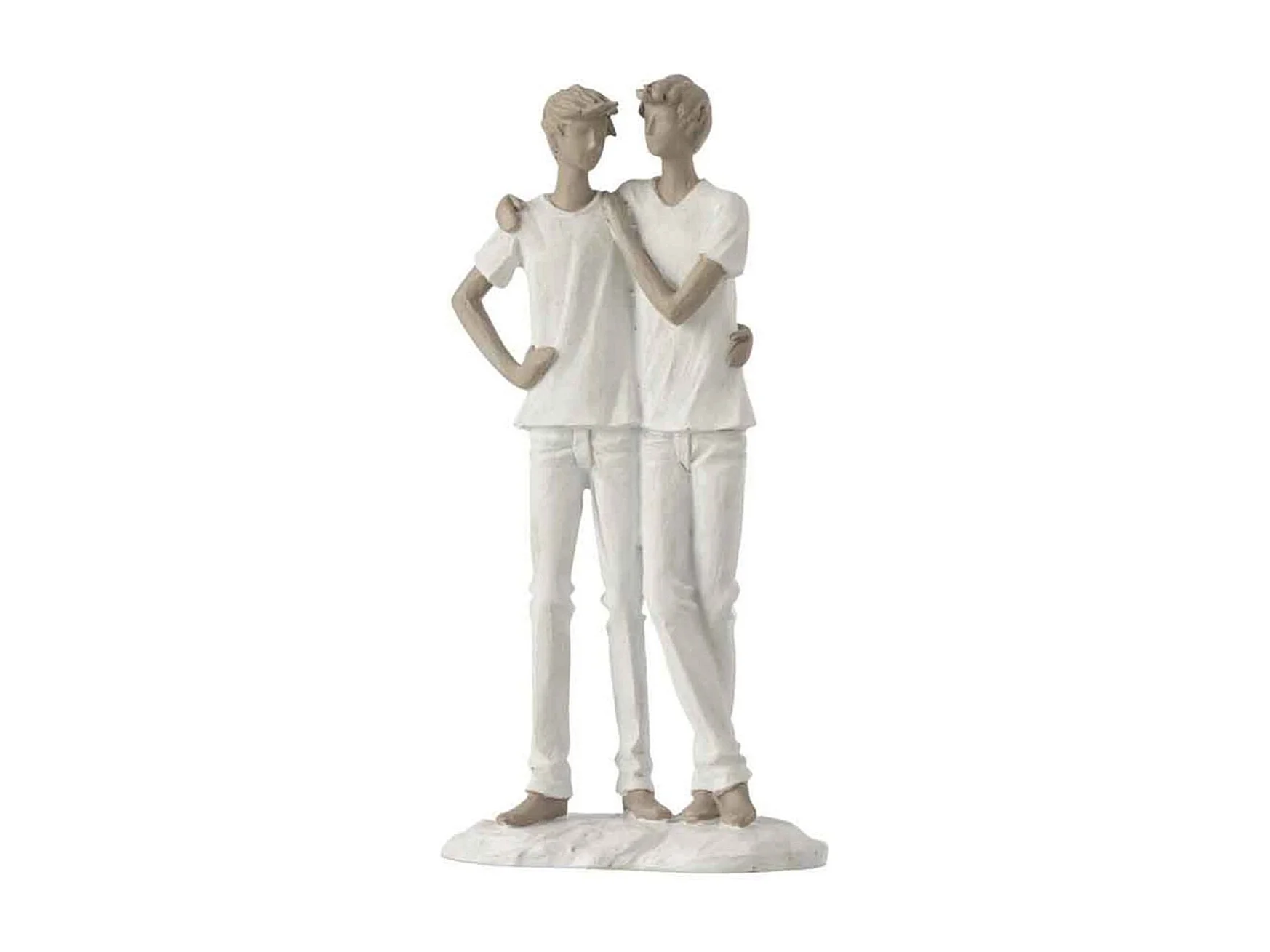 Statuette Déco "Couple de Garçons" 26cm Blanc