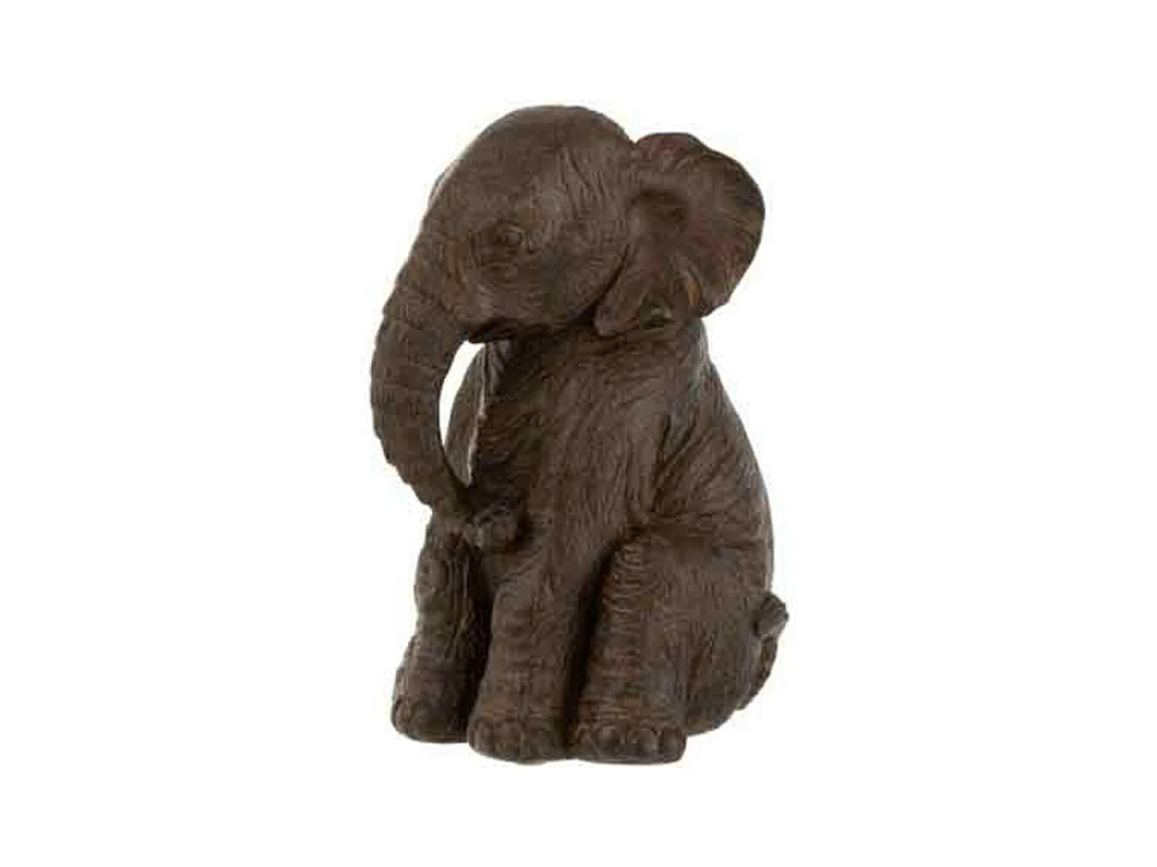 Statuette Déco "Éléphant Assis" 23cm Marron