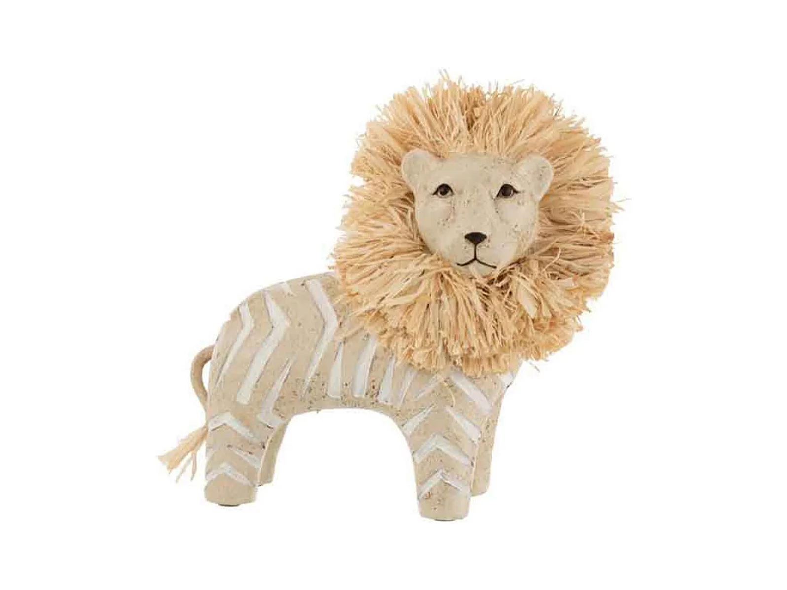Statuette Déco en Raphia "Lion" 22cm Blanc & Beige