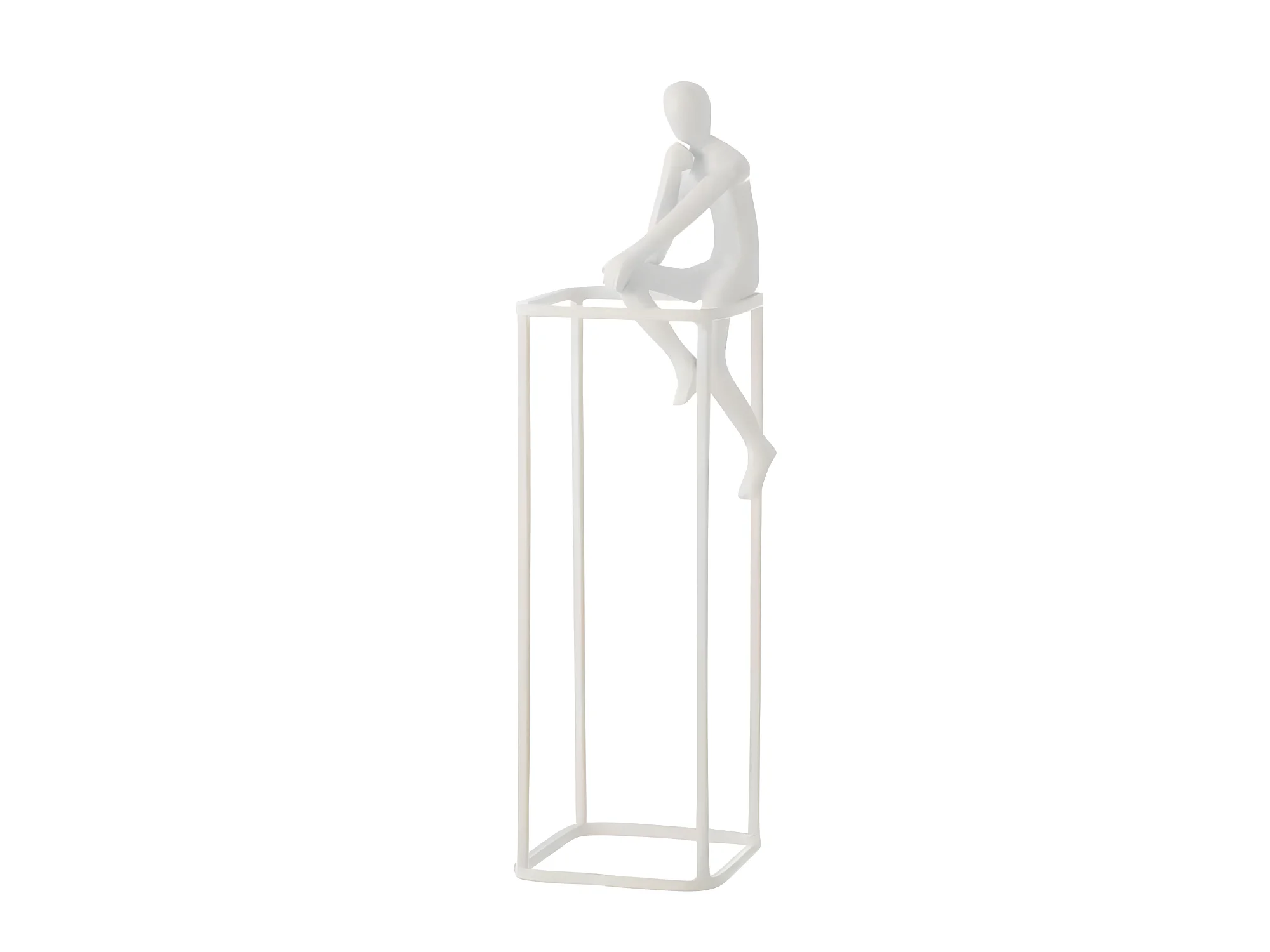 Statuette Déco "Figurine Pensive sur Cube" 36cm Blanc