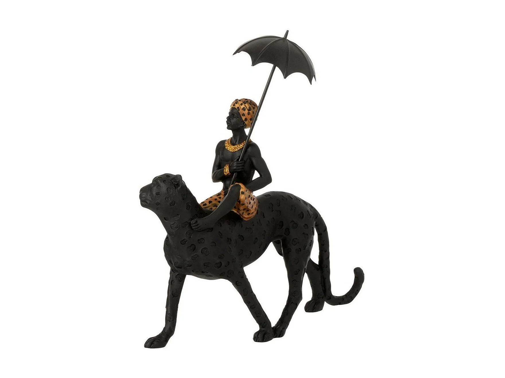 Statuette Déco "Garçon sur Léopard" 34cm Noir