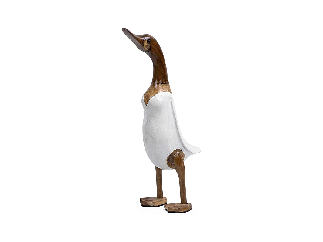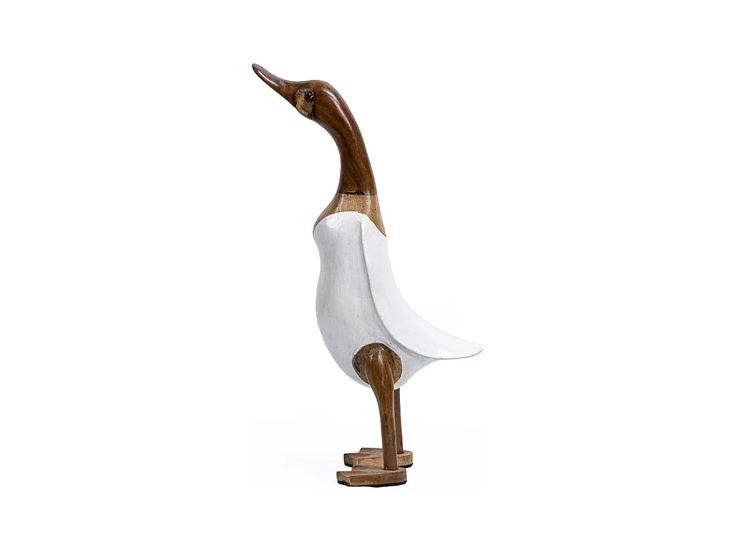 Statuette décorative 40 cm canard maillot blanc bois de teck – DAFLY
