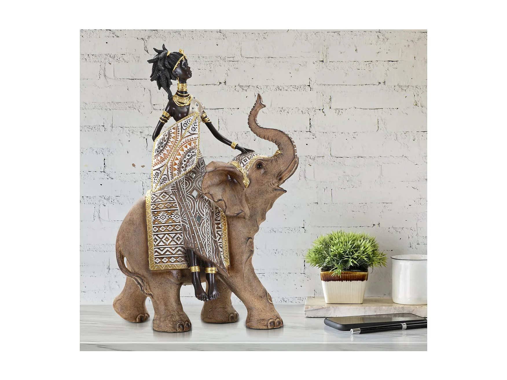Statuette Déco Femme sur Éléphant "Tribal Masai" 32cm Multicolore