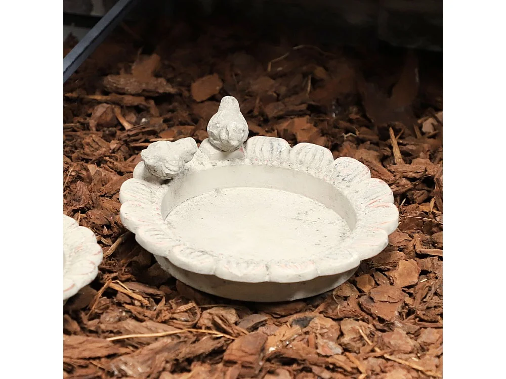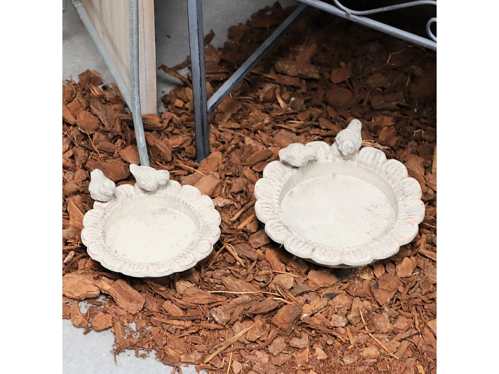 Mangeoire à oiseaux abreuvoir jardin fleur ancien béton gris 24cm