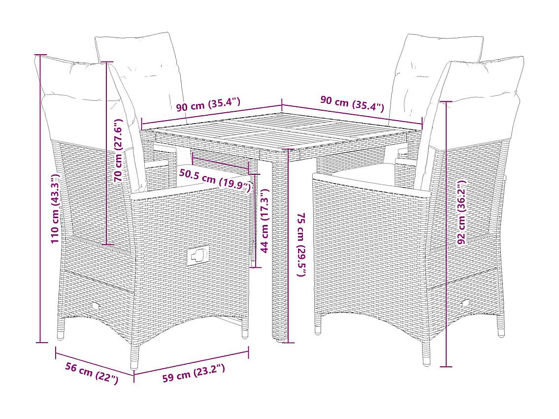 Staunton Ensemble à manger de jardin 5 pcs coussins gris résine tressée