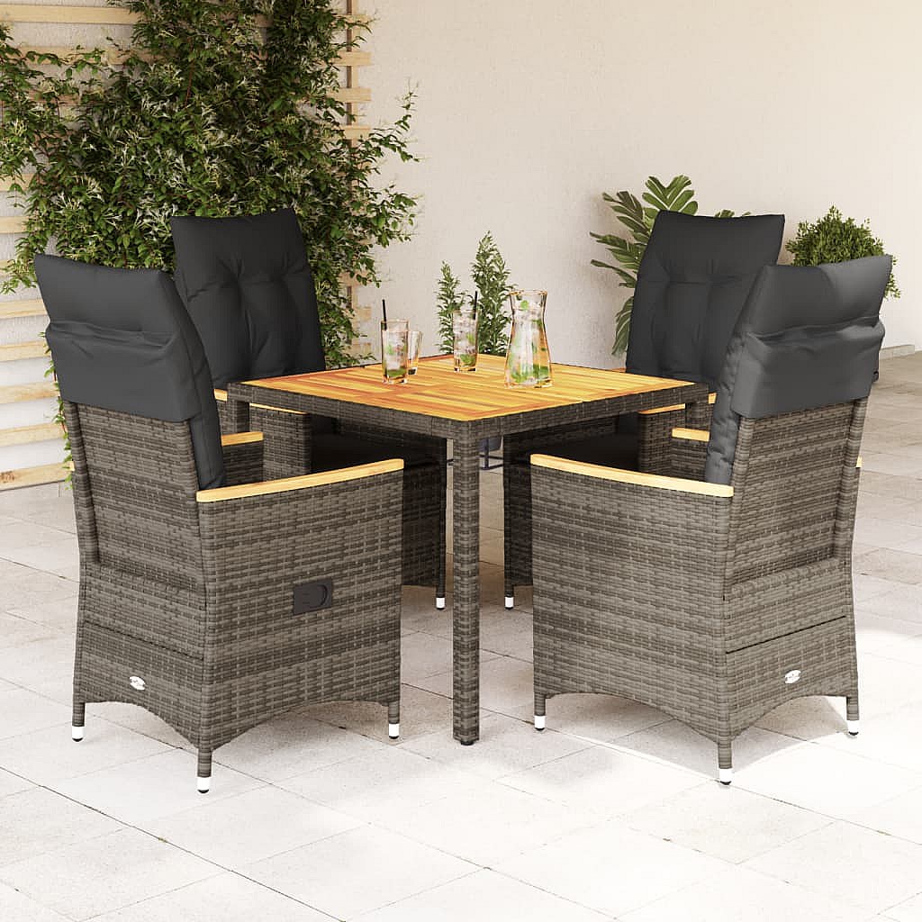 Staunton Ensemble à manger de jardin 5 pcs coussins gris résine tressée