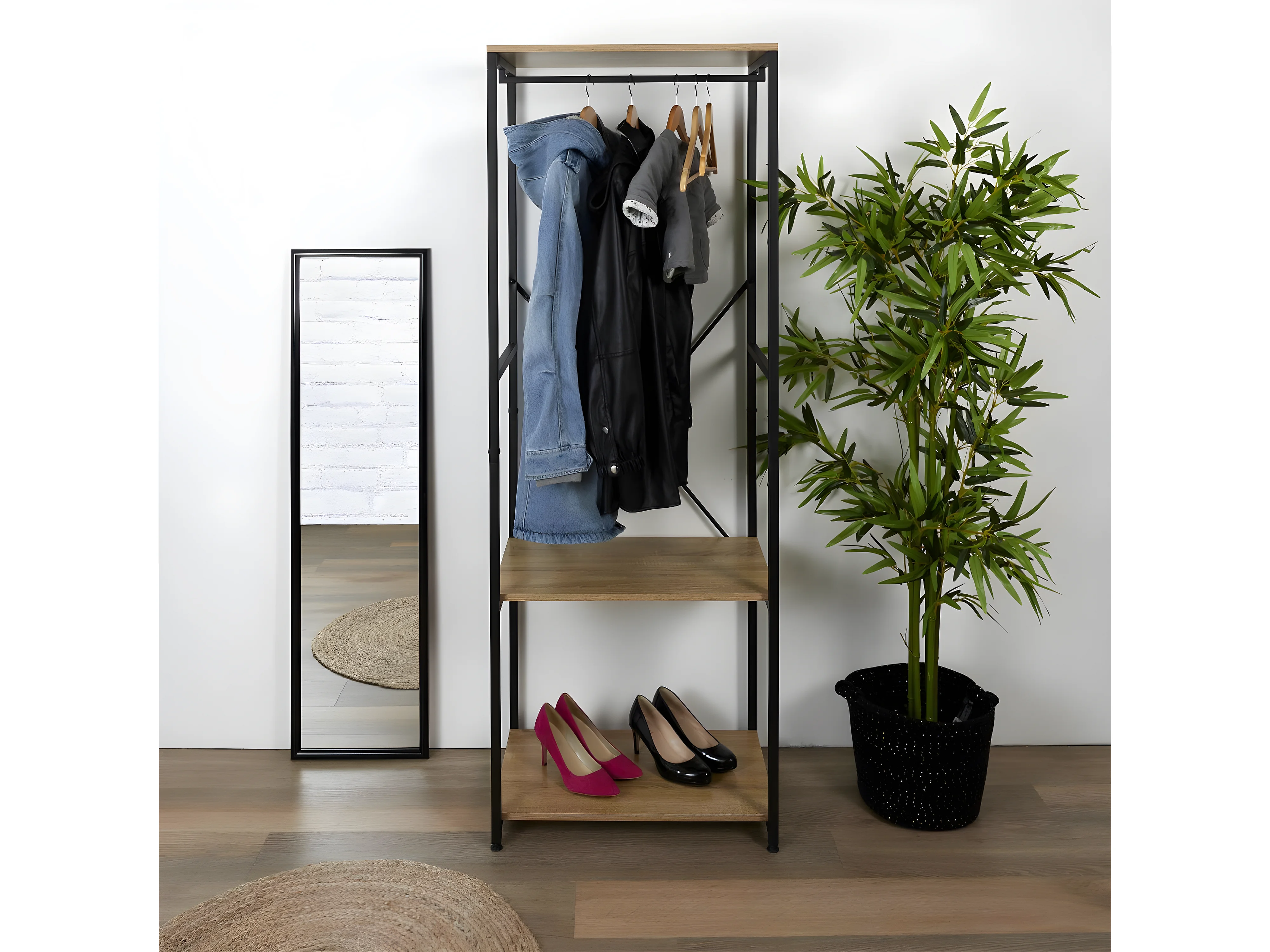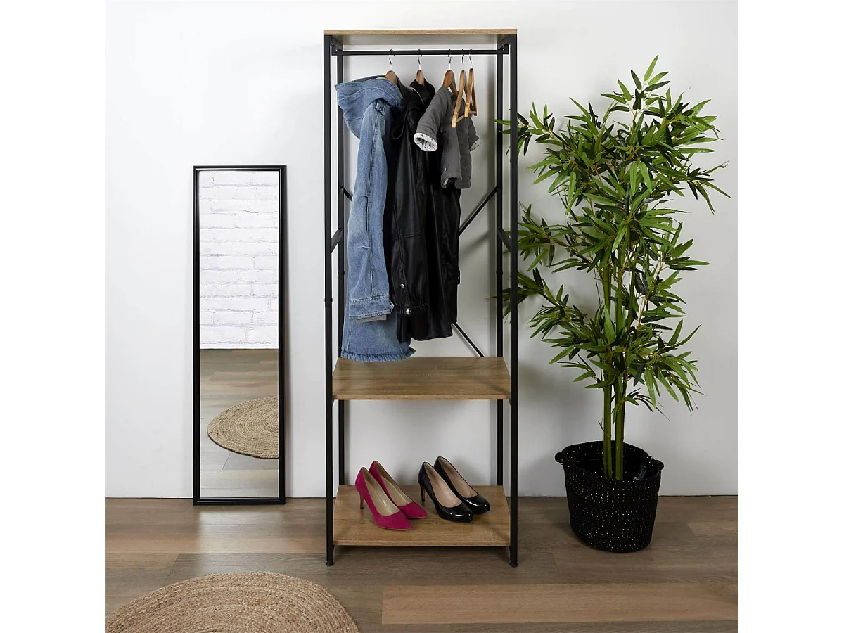 Portant vêtements avec deux étagères Penderie d'entrée Style Industriel Portemanteau H182cm