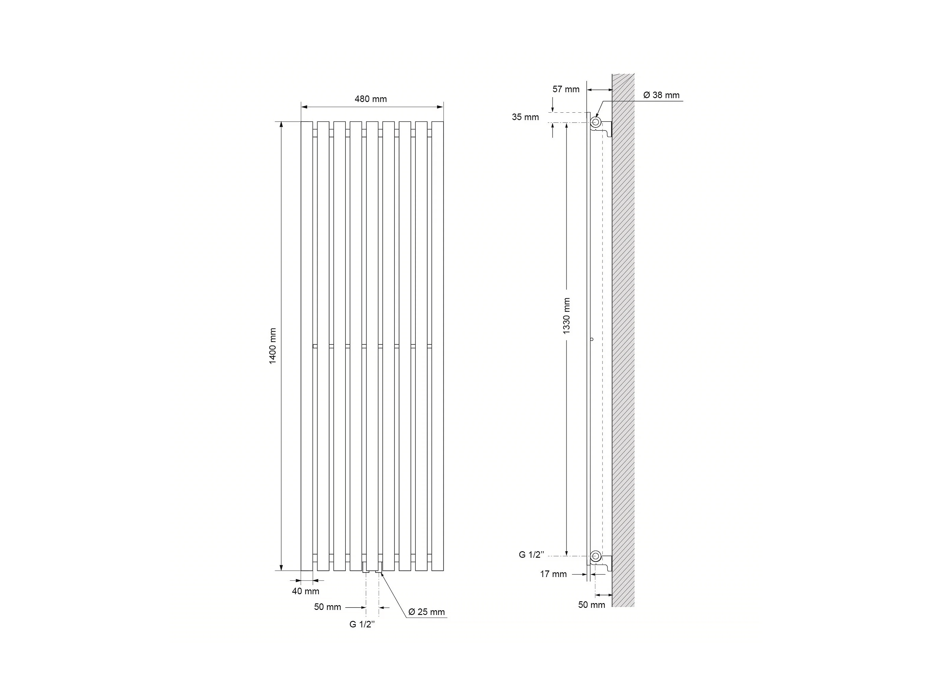 Stella Radiateur design Panneau Radiateur 480x1400mm Blanc