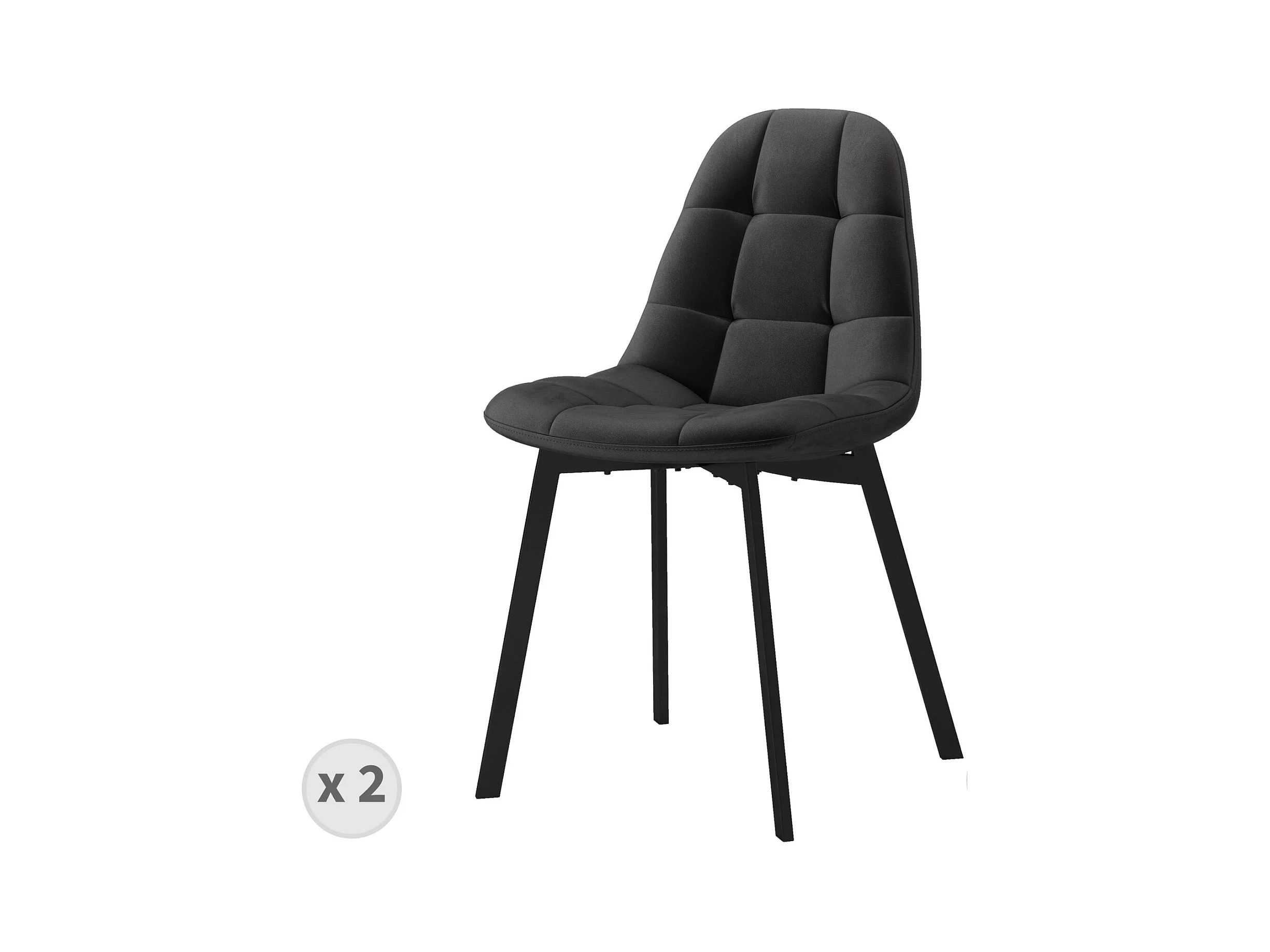 Lot de 2 chaises velours noir capitonnée et pieds métal noir - FARA