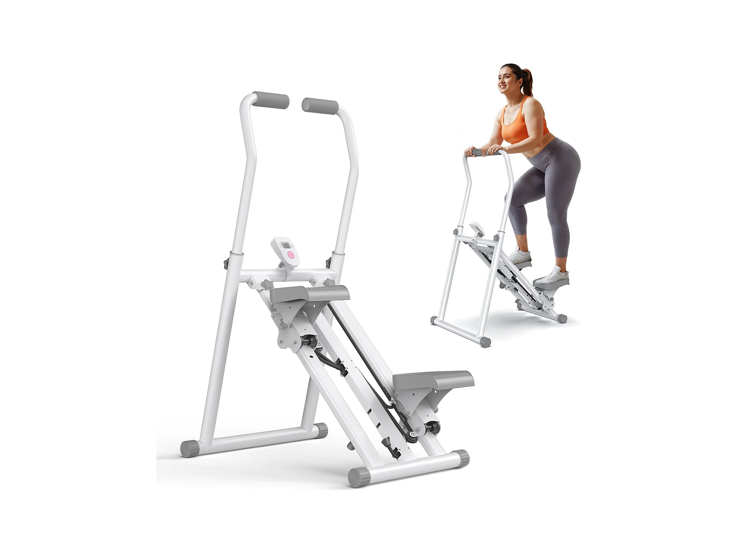 Stepper escalier pliable vertical MERACH, 2 niveaux de résistance, 3 positions de pédales ajustables, écran LCD, 136 kg, blanc