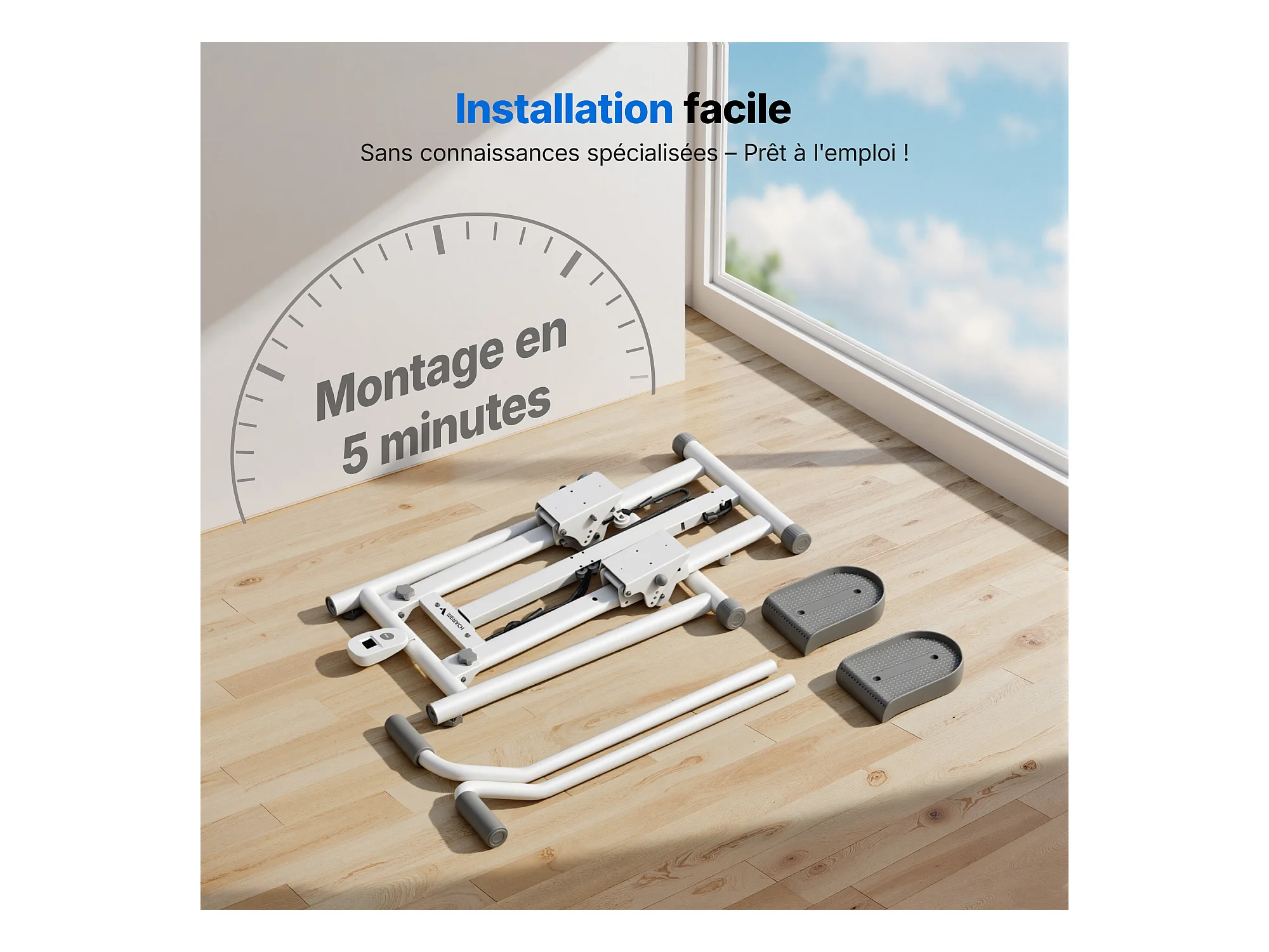 Stepper vertical pliable MERACH, 3 niveaux de résistance, guidon réglable en hauteur et direction, écran LCD, charge 150 kg, blanc