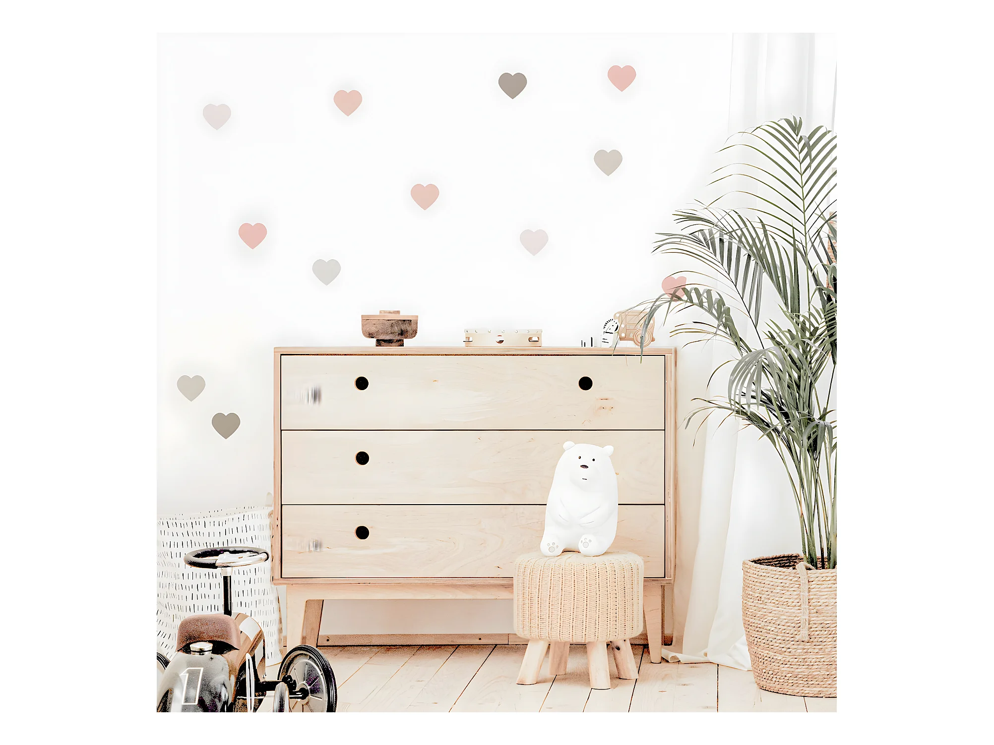 Stickers muraux en vinyle coeurs rose et gris tourterelle