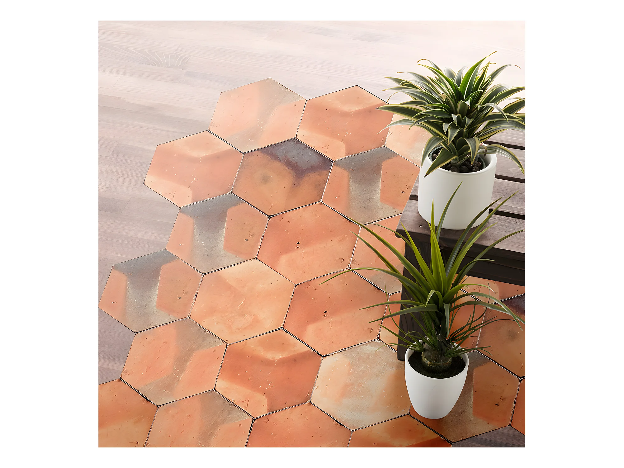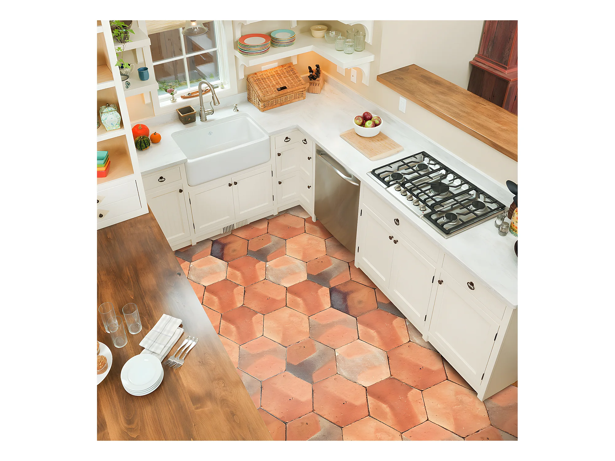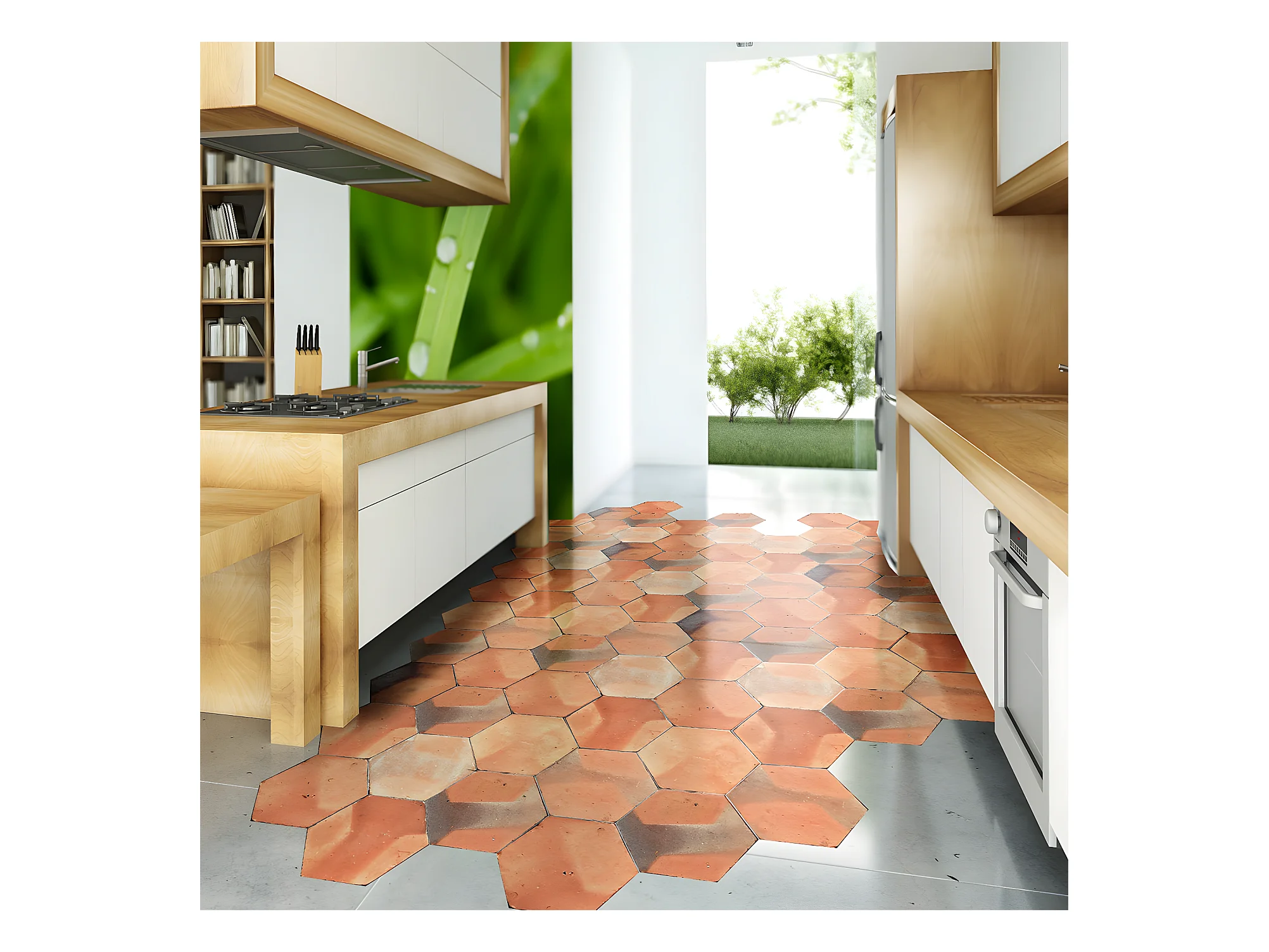 Stickers Sol Anti-dérapant avec Protection - TOMETTES TERRE CUITE SOL DE SARDAIGNE - 40x90cm-10stickershexagones20x18cm