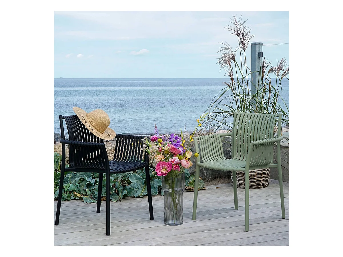 STOLY - Lot de 2 Fauteuils de Table de Jardin en Polypropylène Laqué Vert