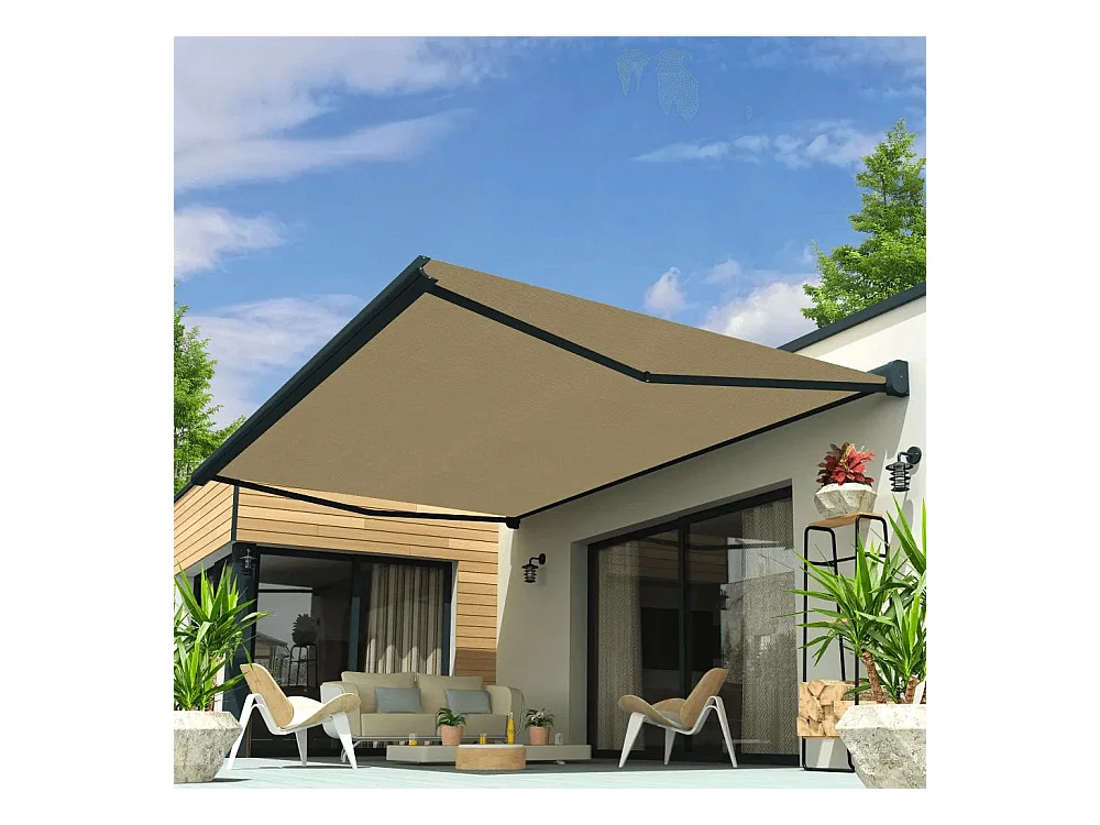 Store banne coffre CELESTE 4,00x3,00 m Motorisé Secours à Télécommande - Gris - Écru