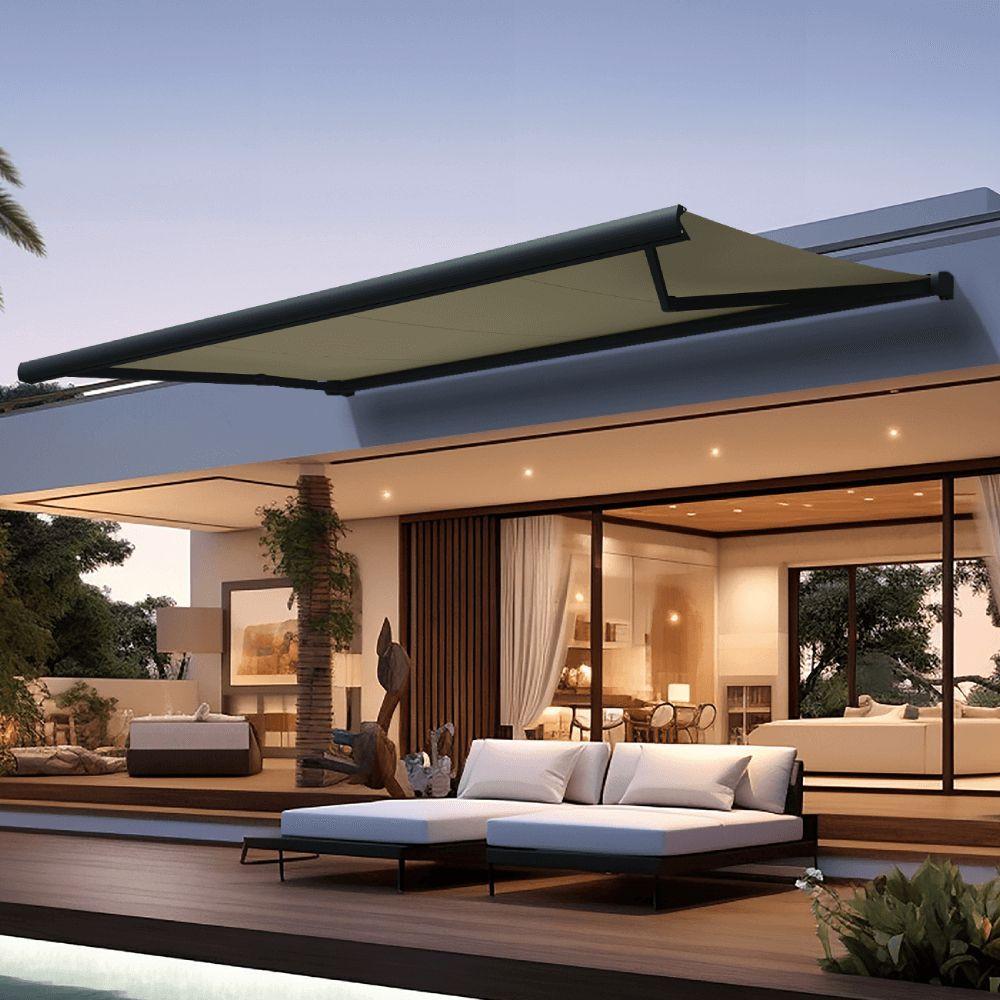 Store banne coffre CINABRE 3,00x2,00 m Motorisé à Télécommande - Gris - Écru