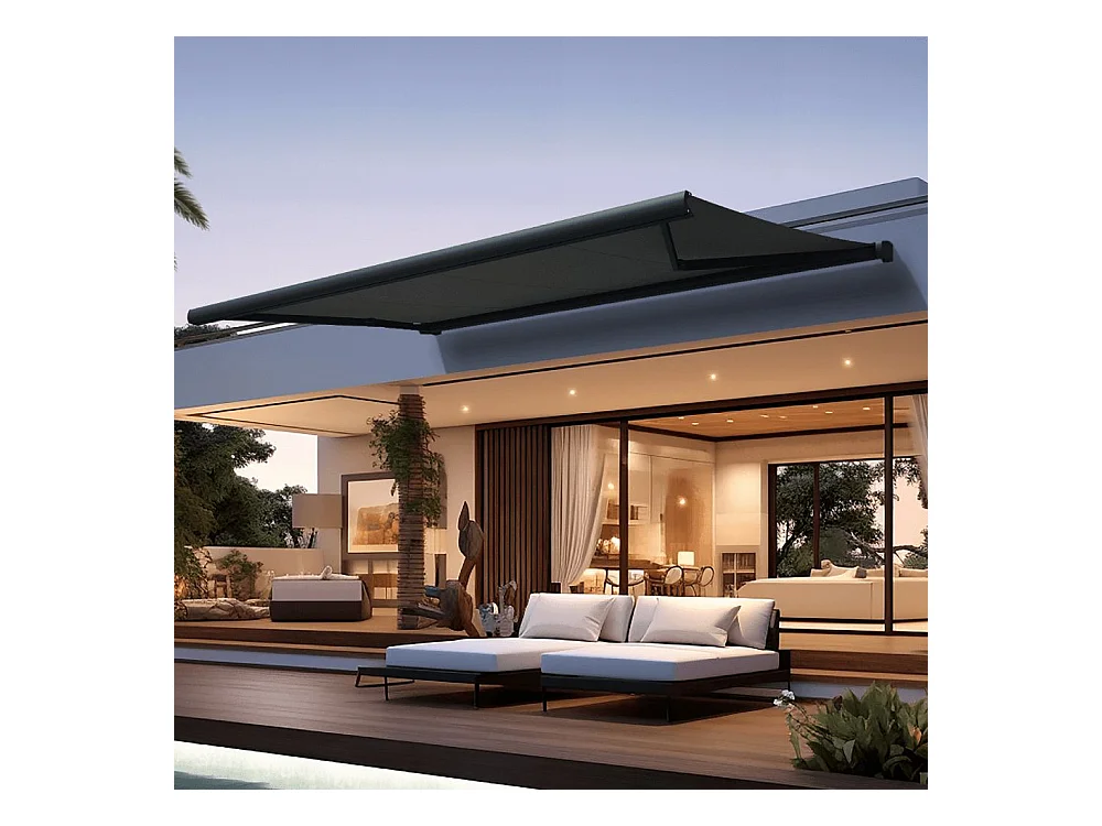 Store banne coffre CINABRE 3,00x2,00 m Motorisé à Télécommande - Gris - Gris