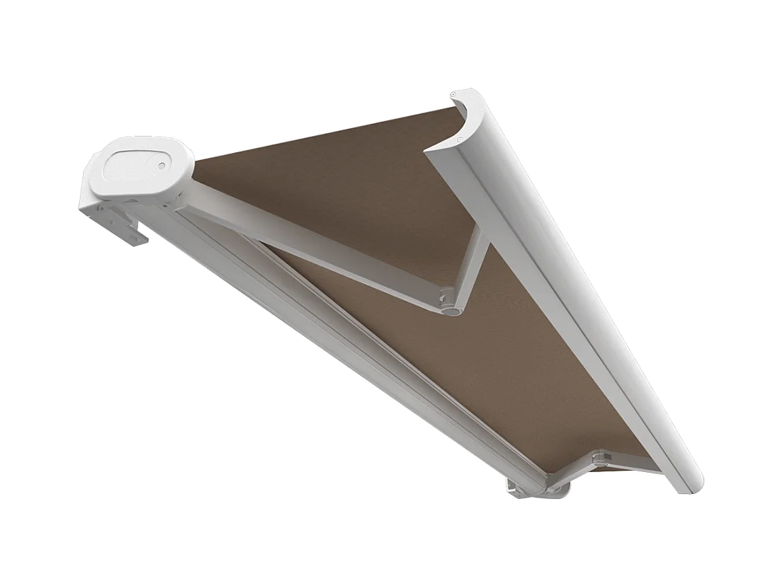 Store banne coffre HEVOA 4,00x3,00 m Motorisé Secours à Télécommande - Blanc - Taupe