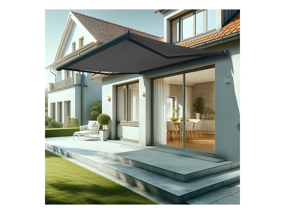 Store banne coffre HEVOA 4,05x3,50 m Motorisé Secours à Télécommande + LED - Gris - Gris