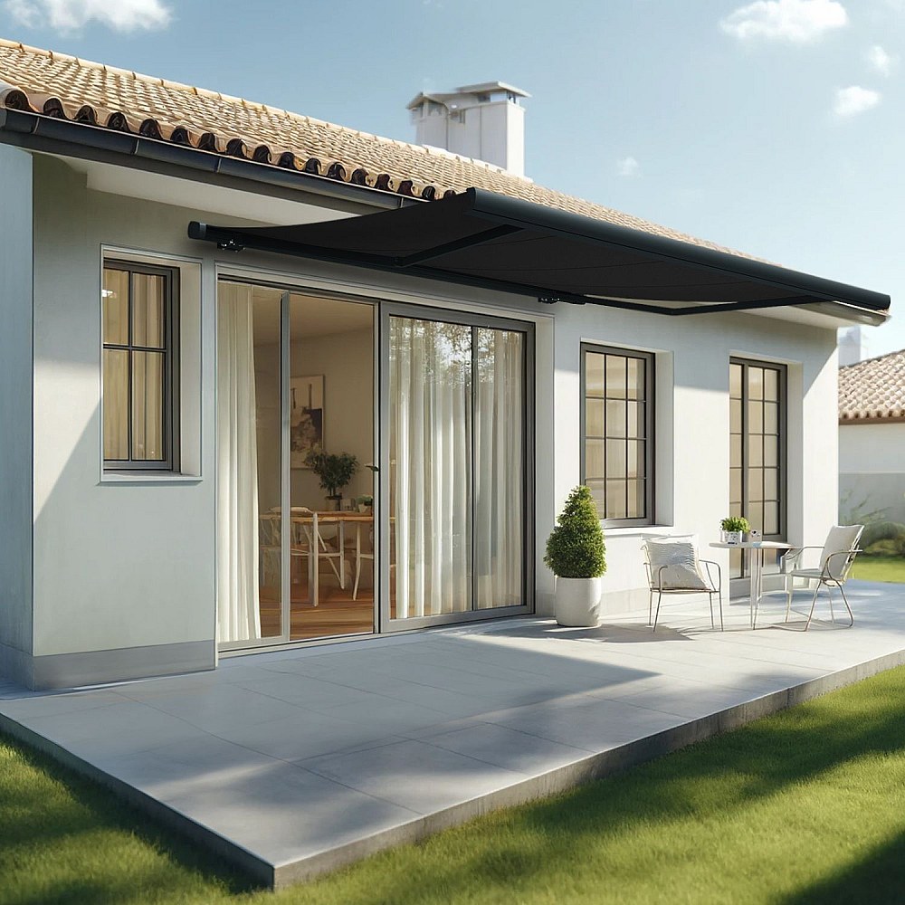 Store banne coffre MEEL 4,00x3,00m (Manuelle - Noir - Gris anthracite)