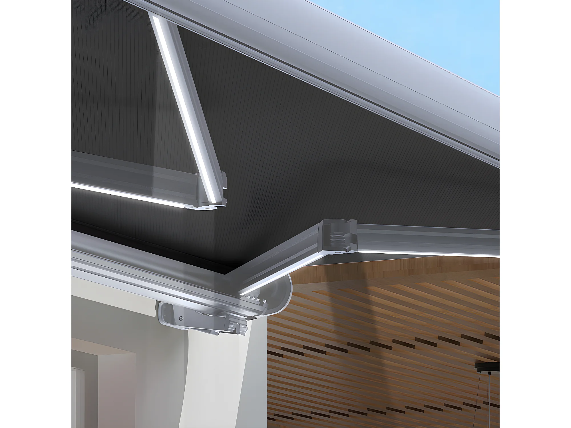 Store banne motorisé 3x2m LED ATLANTA Gris Aluminium coffre intégral