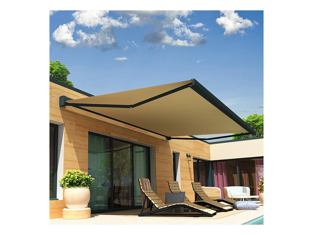 Store banne coffre SOA 4,10x3,50 m Manuelle - Gris - Écru