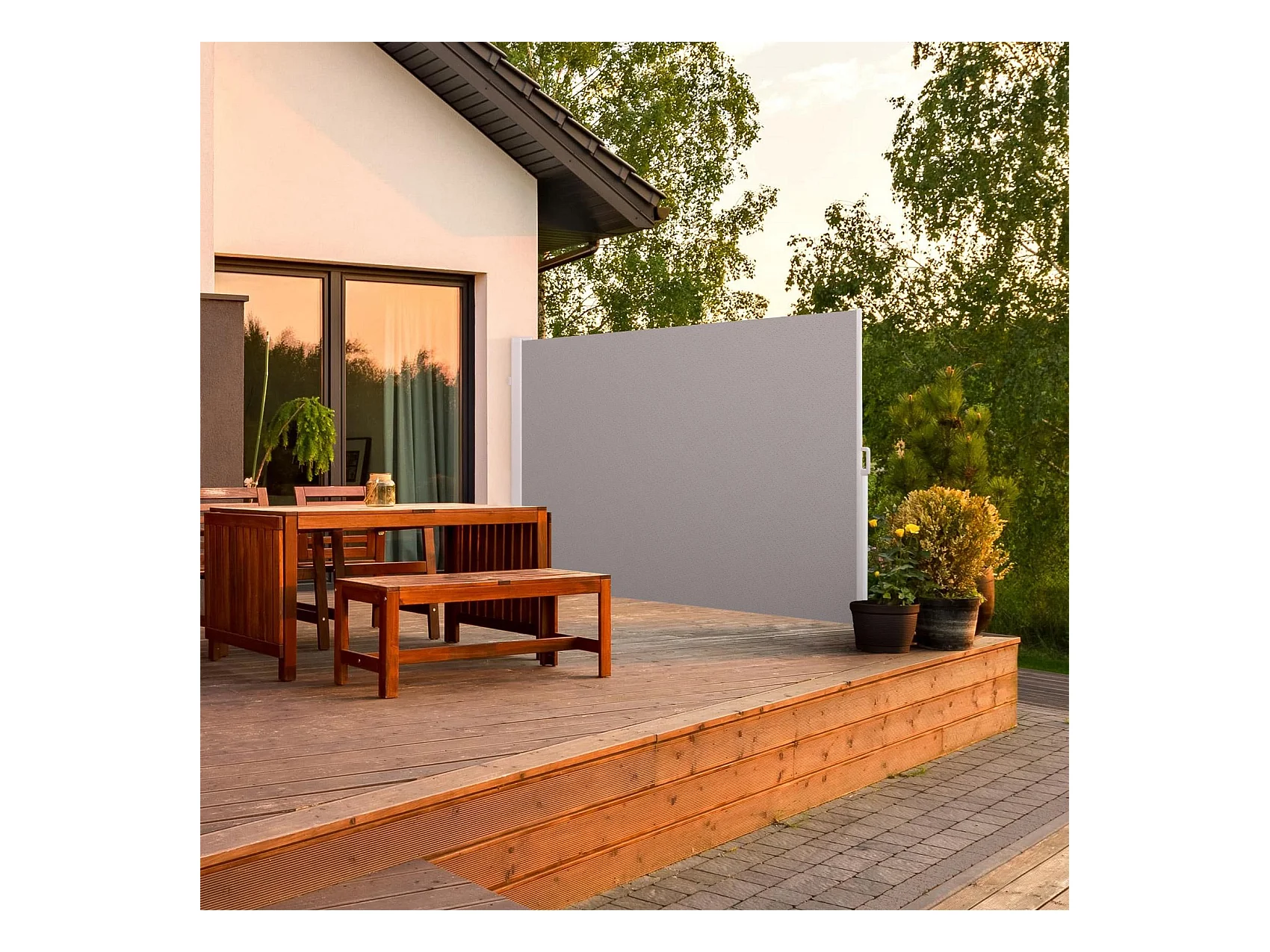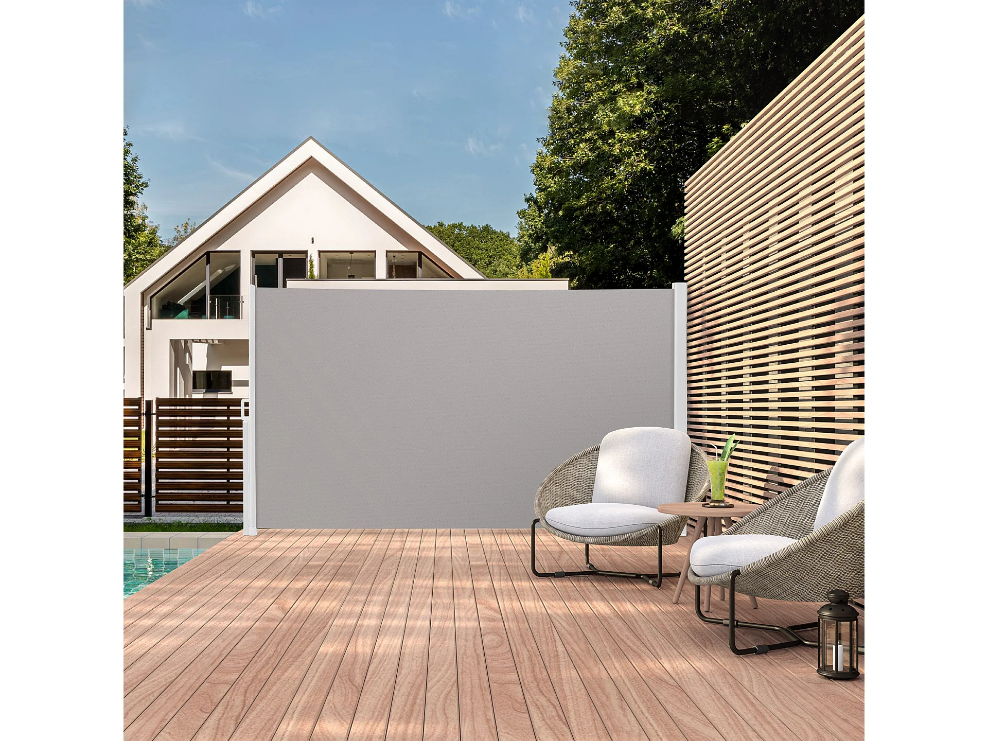 Wasabi - Paravent Extérieur Rétractable 140x300cm - Kit d'ancrage - Brise vue jardin - Cassette Aluminium - Toile Gris UV