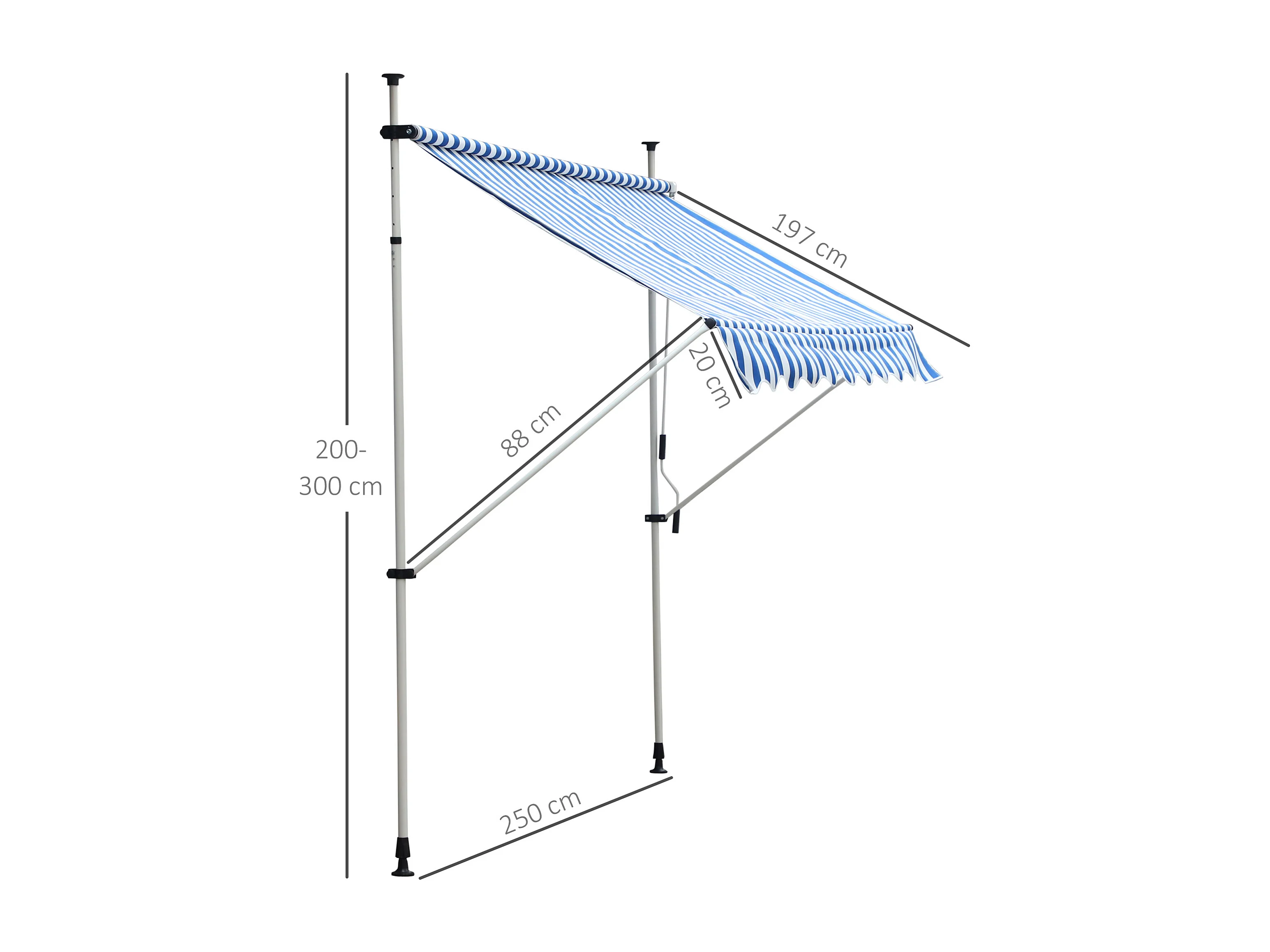 Store banne manuel rétractable 2,5L x 1,5l x 2-3H m inclinaison réglable installation rapide métal alu polyester bleu blanc rayé