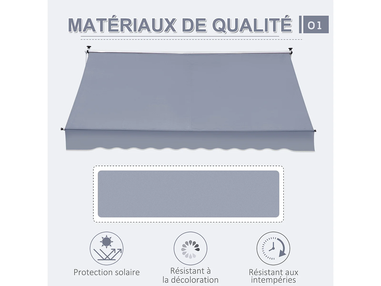 Store banne manuel rétractable 4L x 1,2l m inclinaison et hauteur réglable installation rapide métal alu polyester anti-UV gris