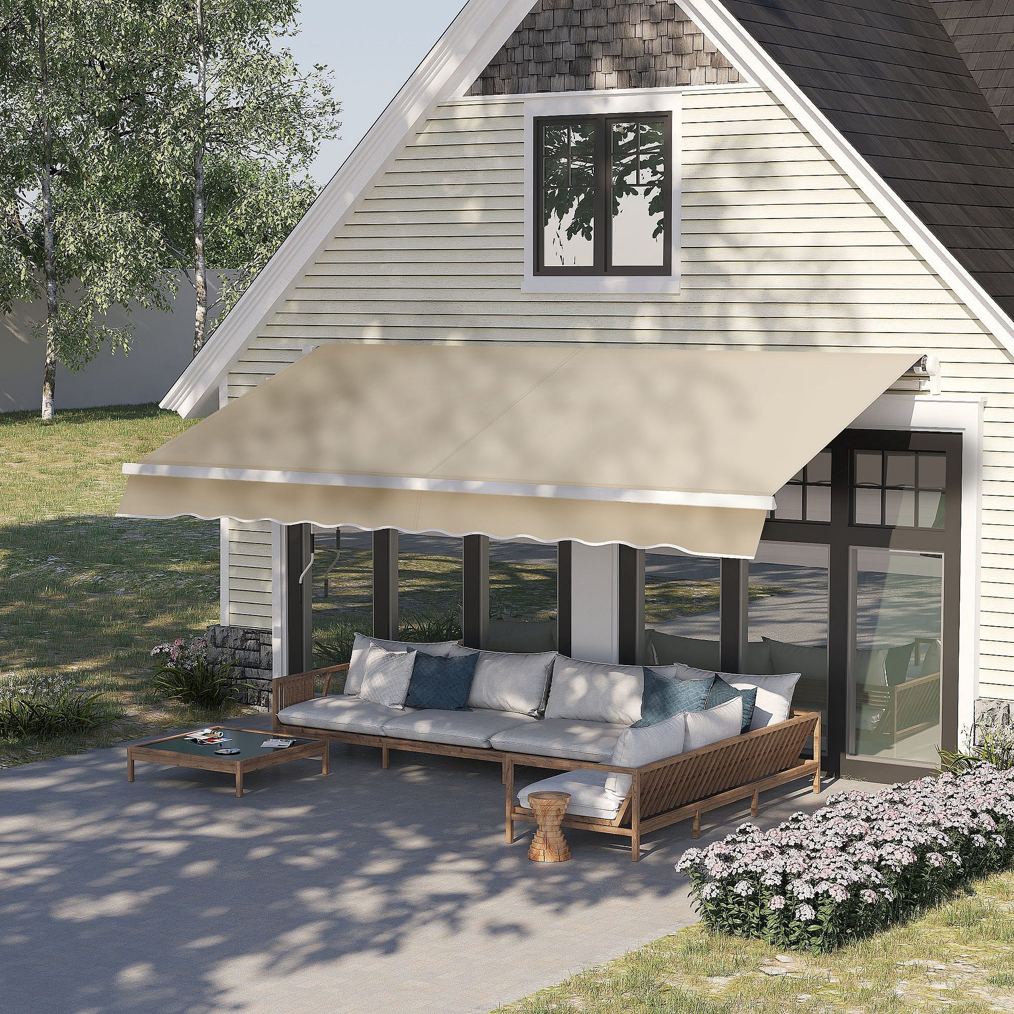 Store banne manuel rétractable aluminium polyester imperméabilisé 3,5L x 2,5l (avancée) m beige