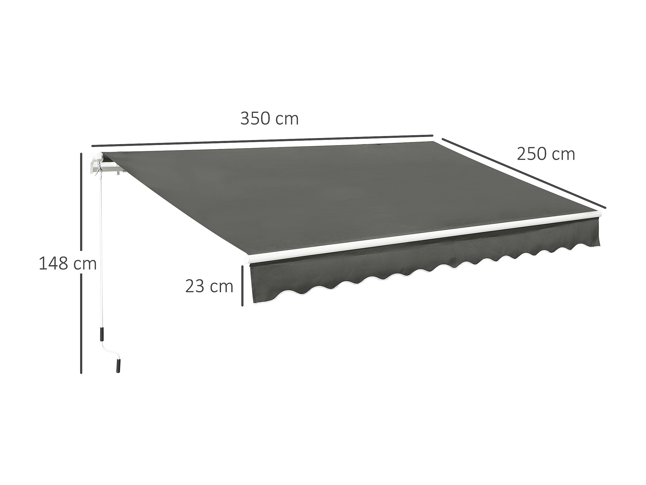 Store banne manuel rétractable aluminium polyester imperméabilisé 3,5L x 2,5l (avancée) m gris