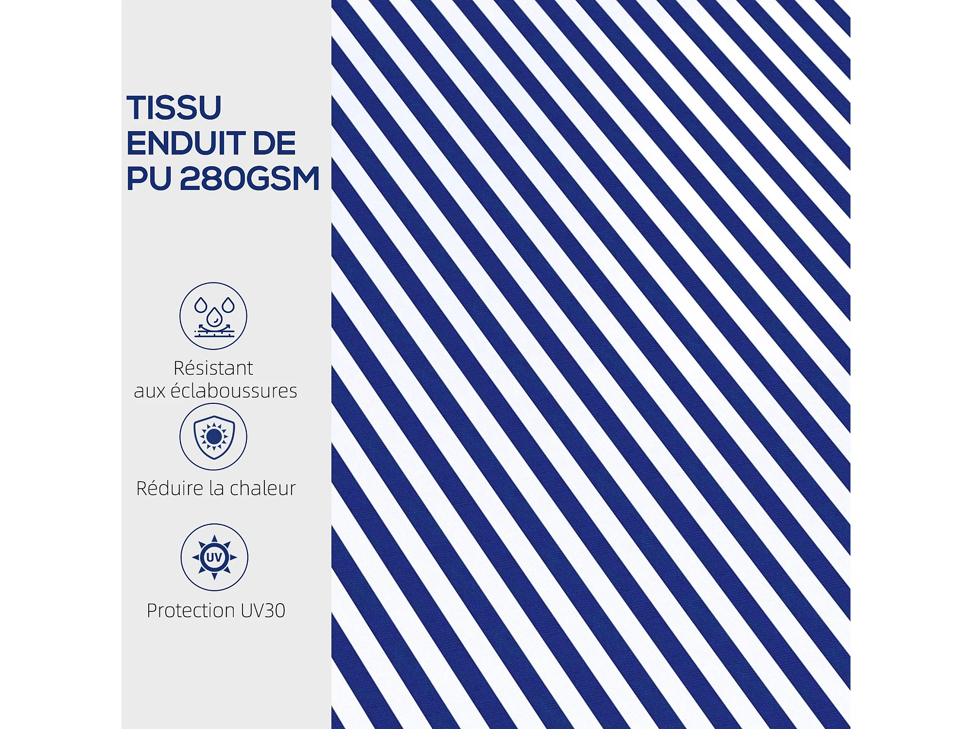 Store banne manuel rétractable inclinaison réglable manivelle alu polyester anti-UV bleu blanc