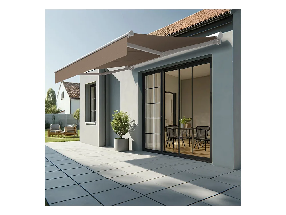 Store banne semi-coffre SARARI 3,00x2,00m (Motorisé à interrupteur + manœuvre de secours - Taupe - Blanc)