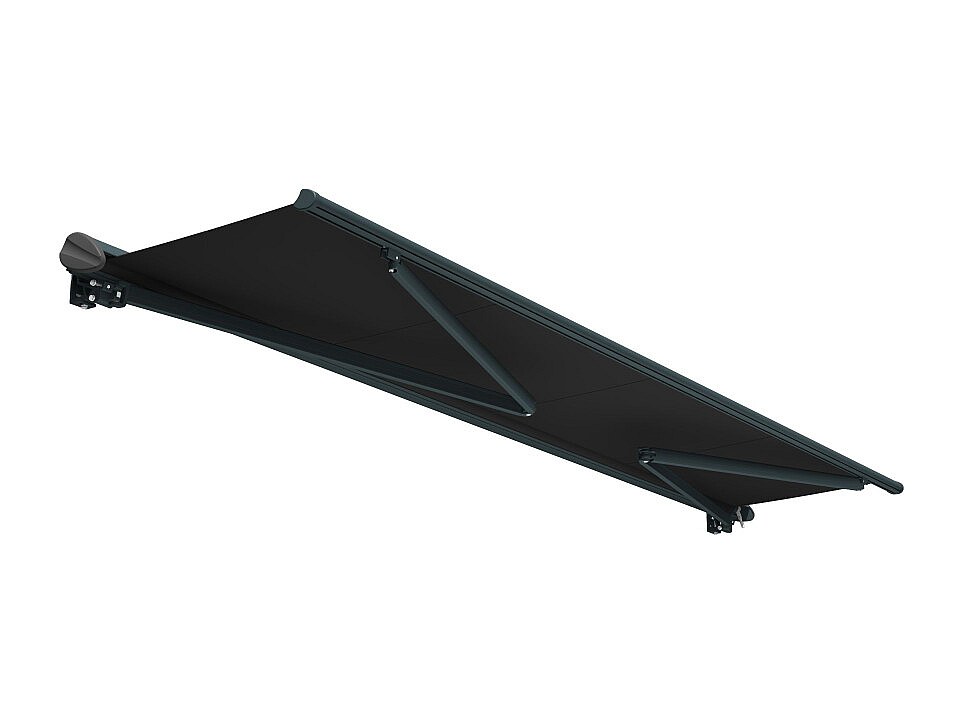 Store banne semi-coffre SARARI 3,00x2,00m (Motorisé à télécommande + manœuvre de secours - Noir - Gris anthracite)