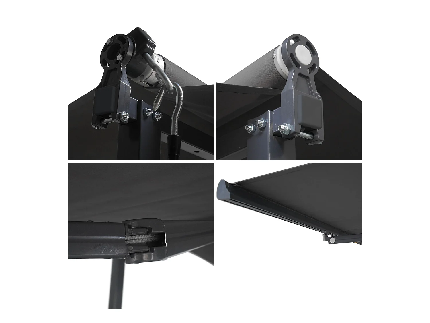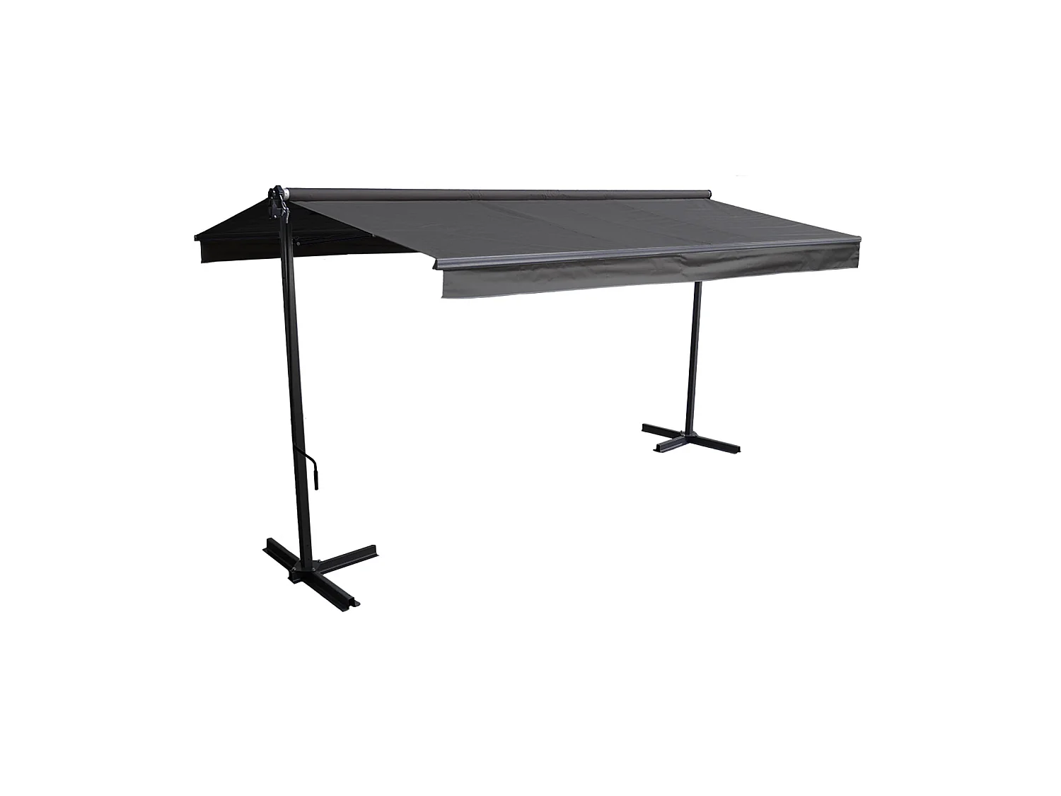 Store double pente FRENE sur pieds 3,95 x 3 m - Toile anthracite et structure grise - HAPPY GARDEN